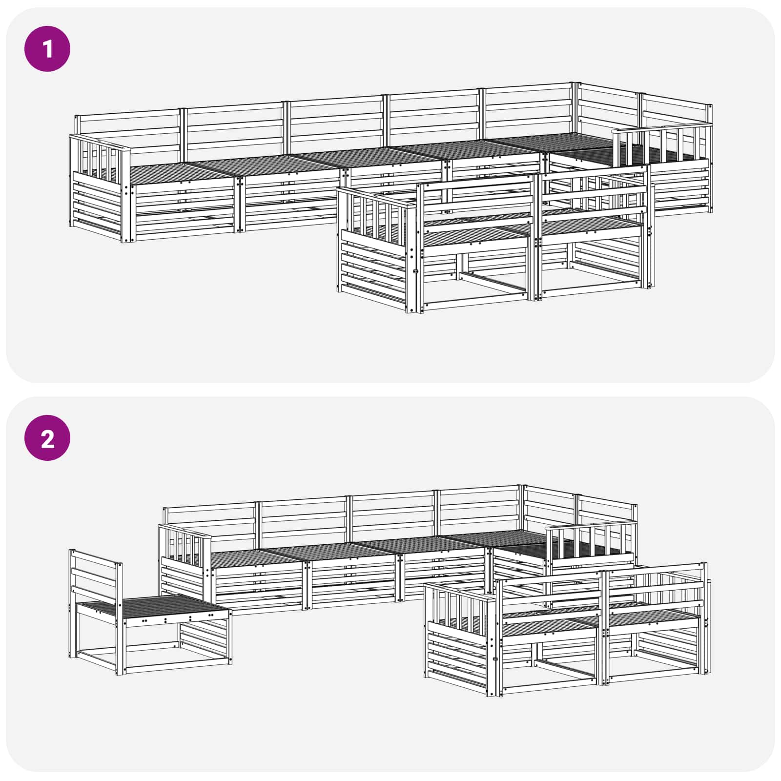 - Funcție și design: Canapeaua are un cadru modular ce poate fi aranjat cum vrei tu, adaptându-se perfect la nevoile tale de spațiu. Spătarul cu șipci oferă suport și aerisire, esențial în zilele călduroase. Brațele confortabile fac ca timpul petrecut afară să fie și mai plăcut.
