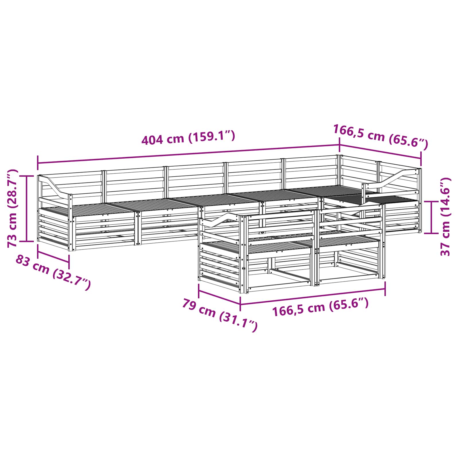 - Sofa de mijloc: 79 x 83 x 73 cm (L l x l x h)