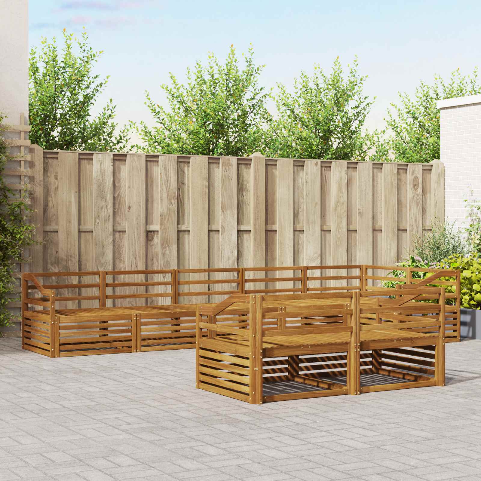 Setul ăsta de canapele pentru exterior combină eleganța modernă cu confortul funcțional, având un design care se potrivește cu orice grădină sau terasă. Arată bine cu un stil minimalist și cu nuanțe frumoase și calde de lemn masiv de acacia. Perfect pentru relaxare afară, setul ăsta e robust dar și flexibil, permițându-ți să-l aranjezi după bunul plac pentru o seară liniștită sau o petrecere cu prietenii. Fiecare piesă nu doar că va îmbunătăți atmosfera grădinii tale, dar va aduce și o vibrație primitoare, fie că ești singur sau în compania altora.