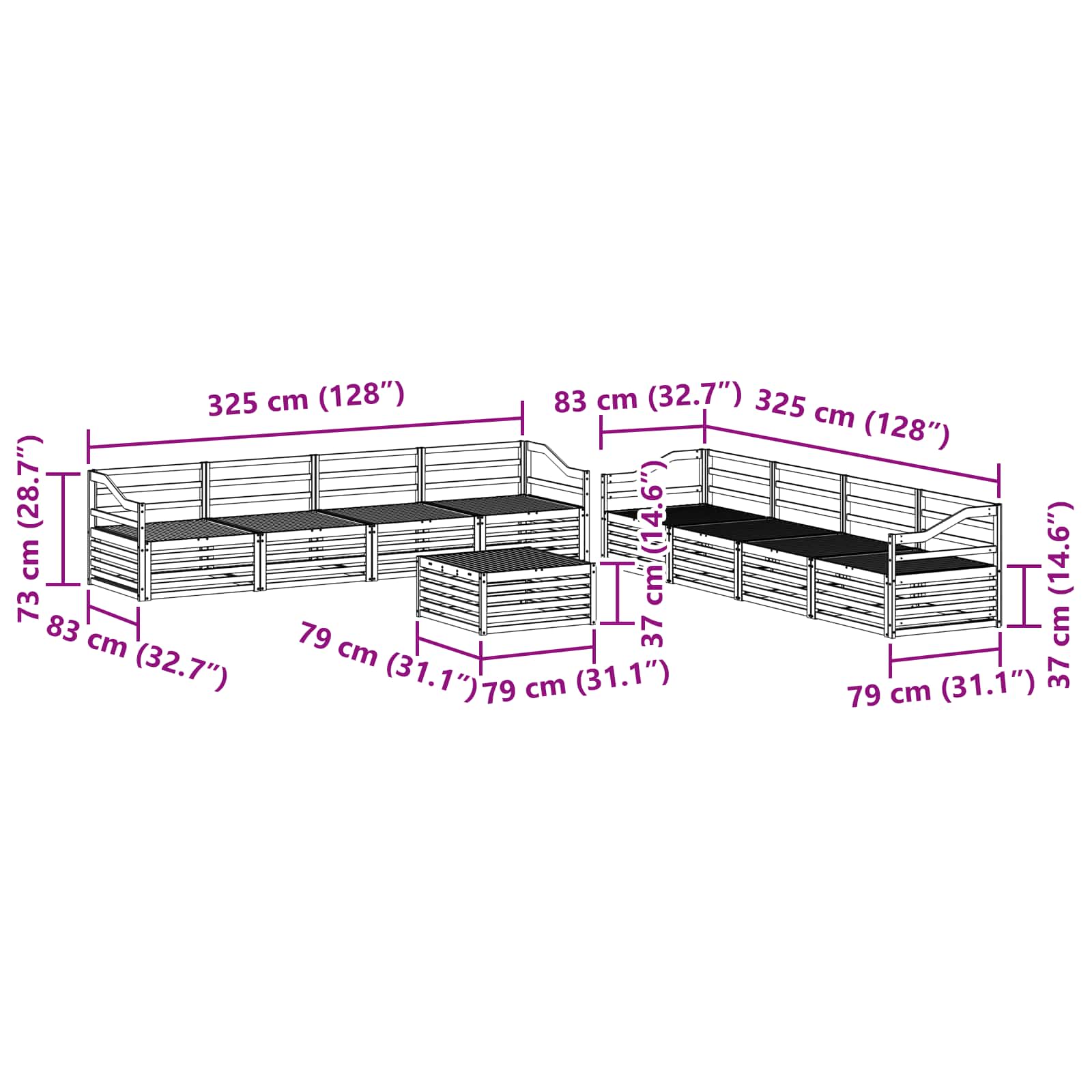 - 8 x Canapea medie: 79 x 83 x 73 cm (LxWxH)