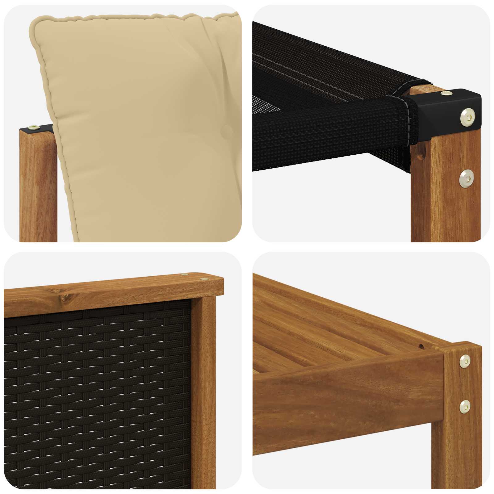 • Funcționalitate brațe: Bratele din lemn de acacia oferă suport pe care te poți baza, făcând setul mai comod.