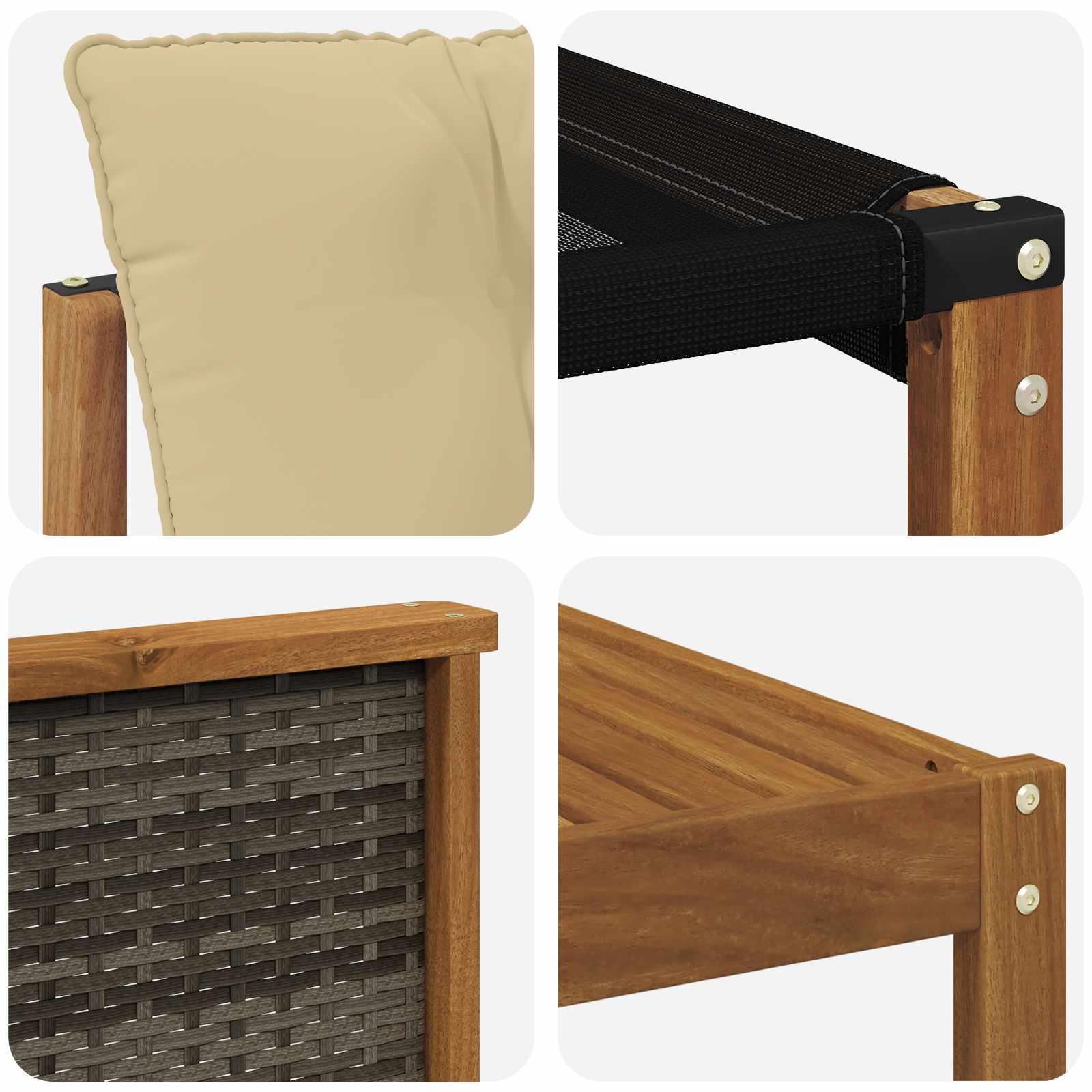 • Funcționalitate brațe: Bratele din lemn de acacia oferă suport pe care te poți baza, făcând setul mai comod.