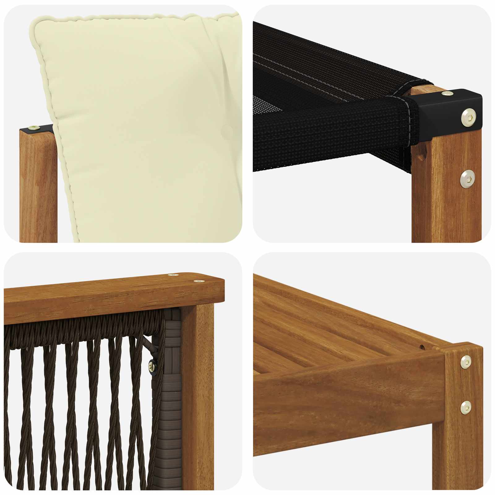 • Funcționalitate brațe: Bratele din lemn de acacia oferă suport pe care te poți baza, făcând setul mai comod.