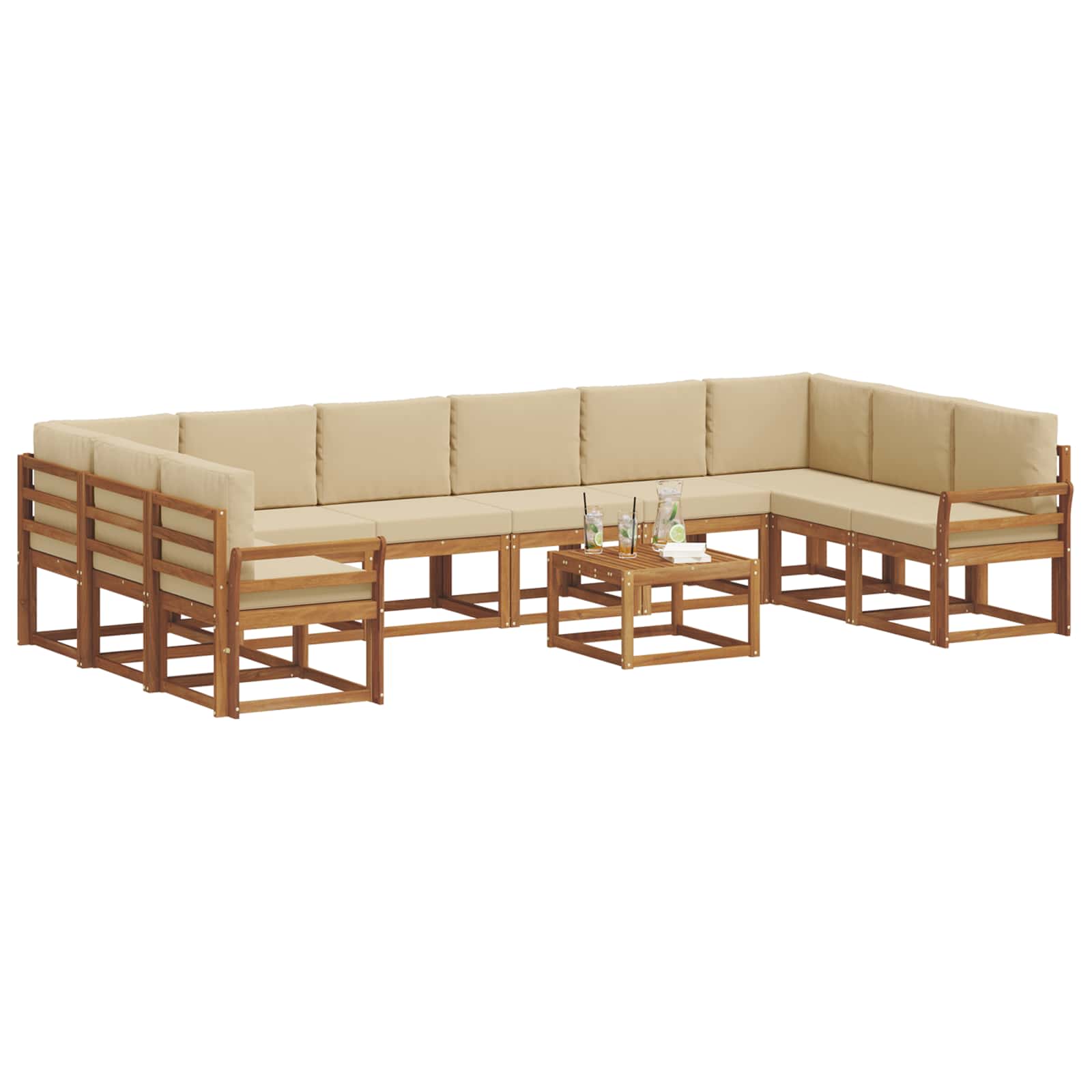 Acest set de canapele secționale pentru exterior se potrivește perfect în peisaje moderne, oferind un loc fain și confortabil pentru diverse spații exterioare. Făcut din lemn masiv de acacia, are un design simplu care îl face să fie o alegere atractivă pentru grădini, terase și locuri lângă piscină. Modularitatea sa oferă flexibilitate, adaptându-se ușor la diverse nevoi de șezut, cu tonuri naturale care creează o atmosferă plăcută atât pentru întâlniri, cât și pentru relaxare.