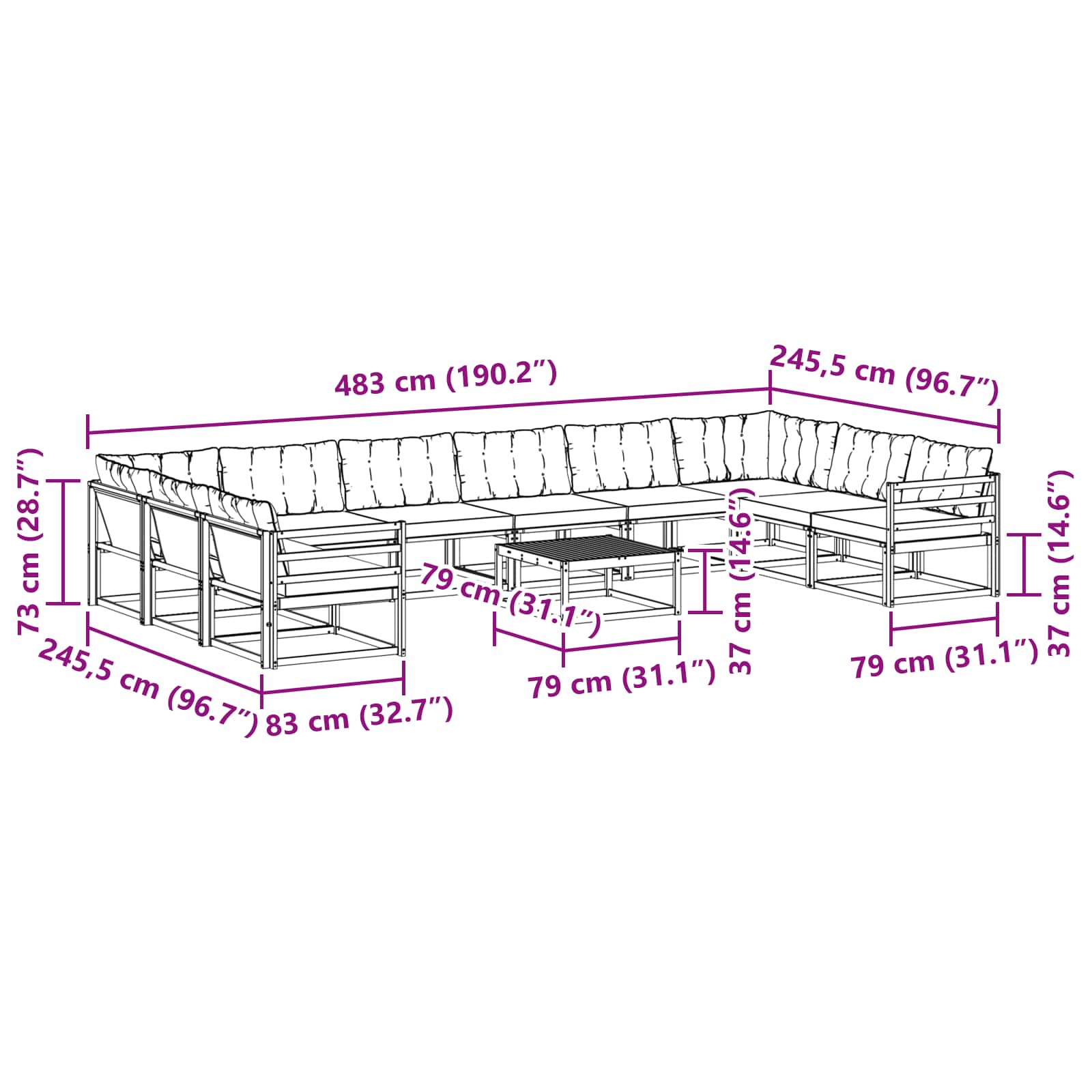 - 8 x Canapea medie: 79 x 83 x 73 cm (L x l x î)