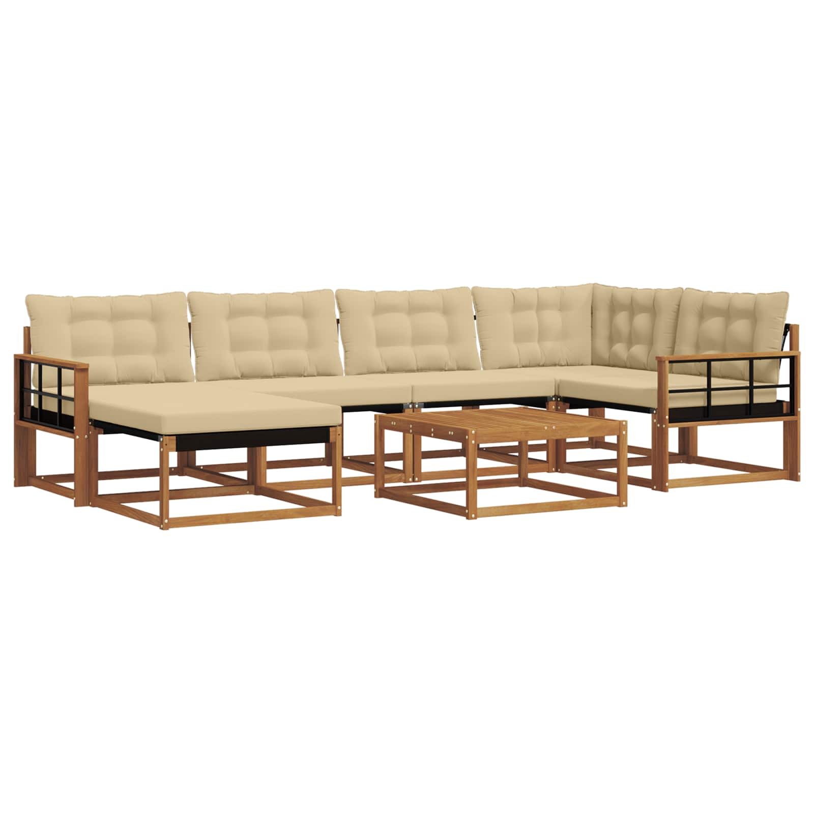 - Componente integrate: Are brațe de suport și un cadru solid din lemn de acacia. Pernele groase umplute cu spumă oferă comfort, iar cele detașabile cu fermoar fac curățarea și mai simplă.