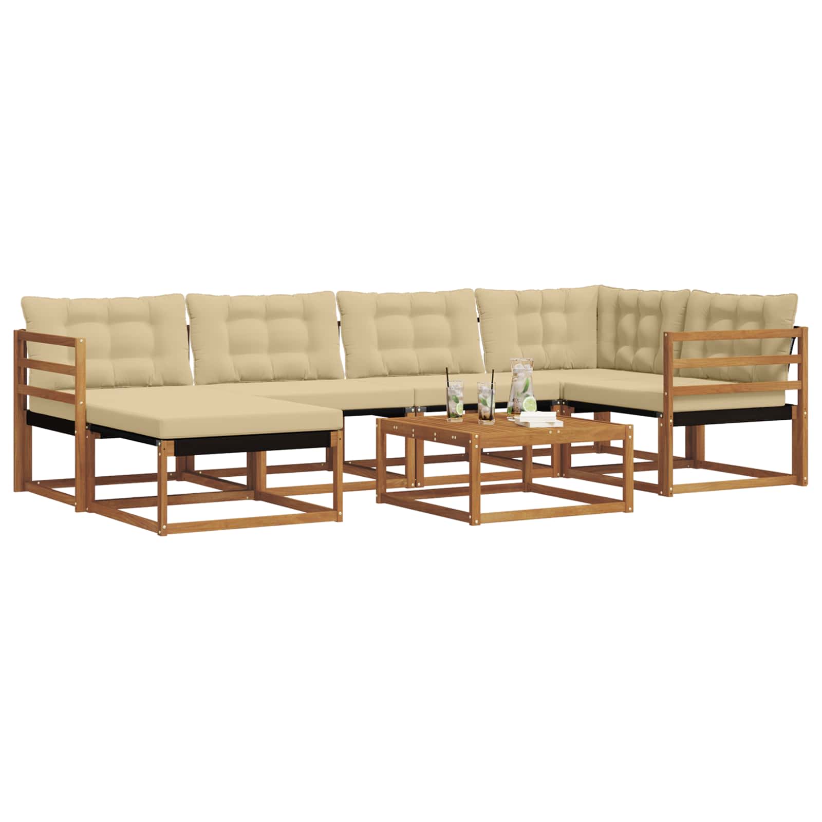 - Componente integrate: Are brațe de suport și un cadru solid din lemn de acacia. Pernele groase umplute cu spumă oferă comfort, iar cele detașabile cu fermoar fac curățarea și mai simplă.