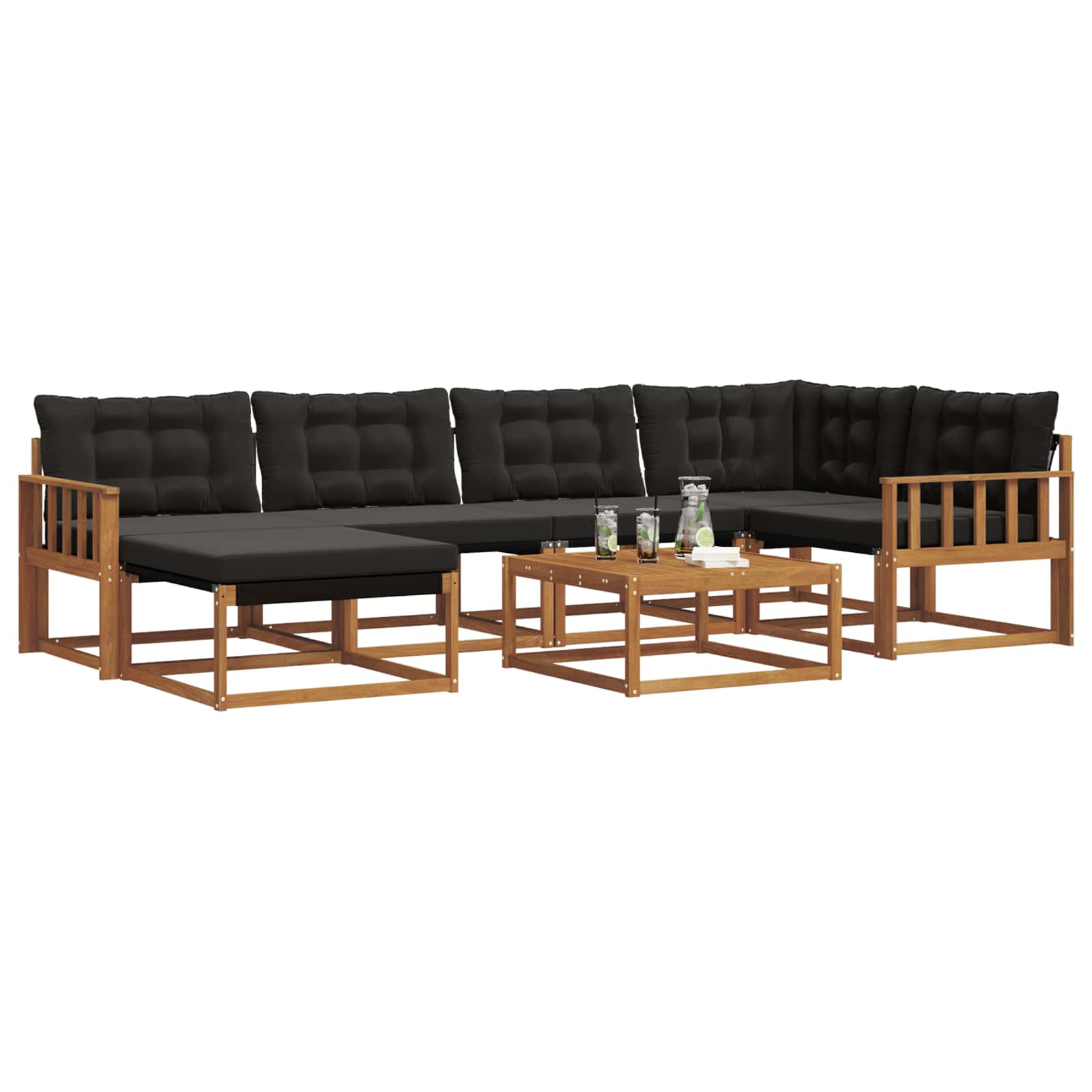 - Componente integrate: Are brațe de suport și un cadru solid din lemn de acacia. Pernele groase umplute cu spumă oferă comfort, iar cele detașabile cu fermoar fac curățarea și mai simplă.