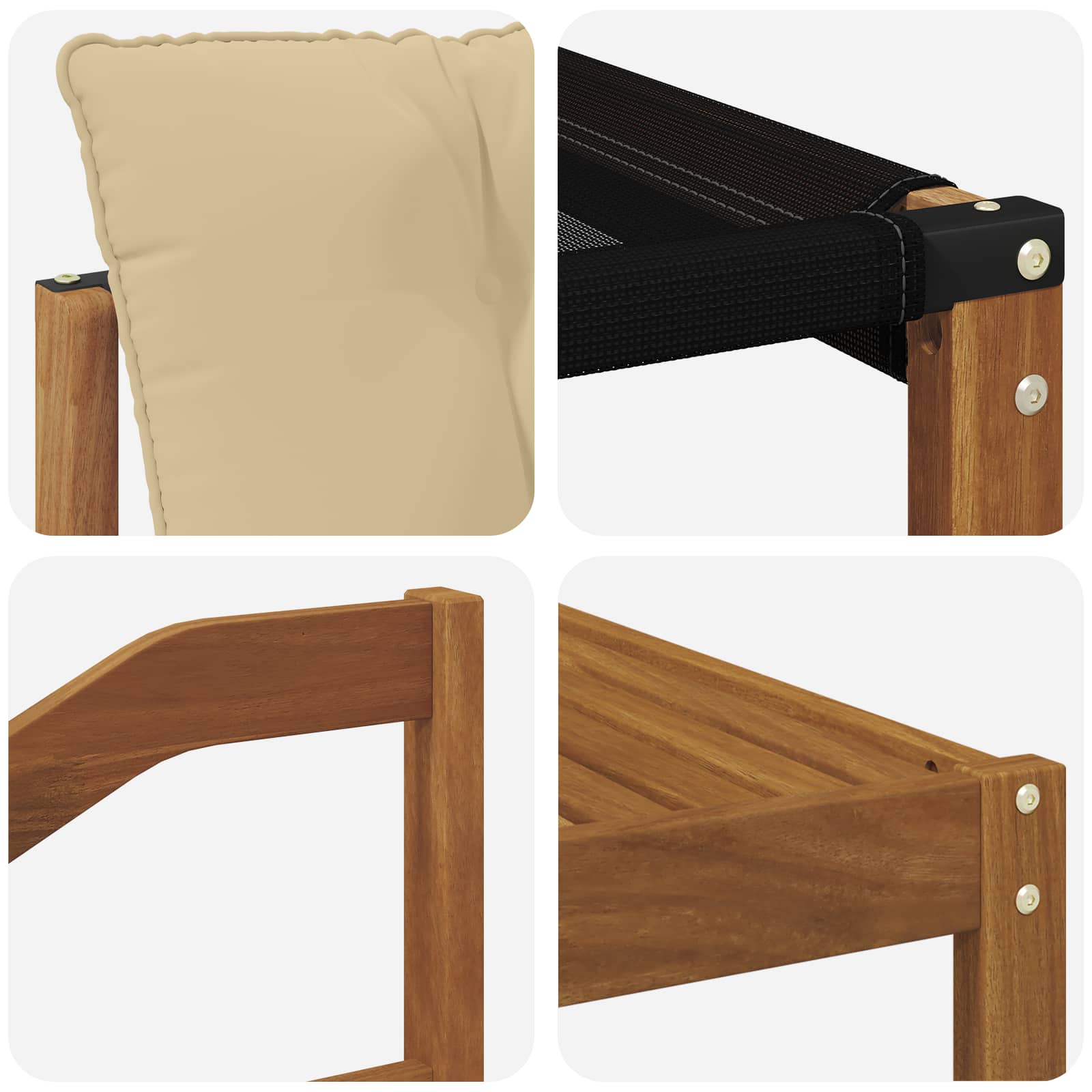 - Componente Incluse: Setul conține un șezut confortabil, spătar și brațe din Textilena și lemn masiv de acacia. Brațele oferă suport ergonomic, iar spătarul din Textilena asigură respirabilitate, completat de perna detașabilă.