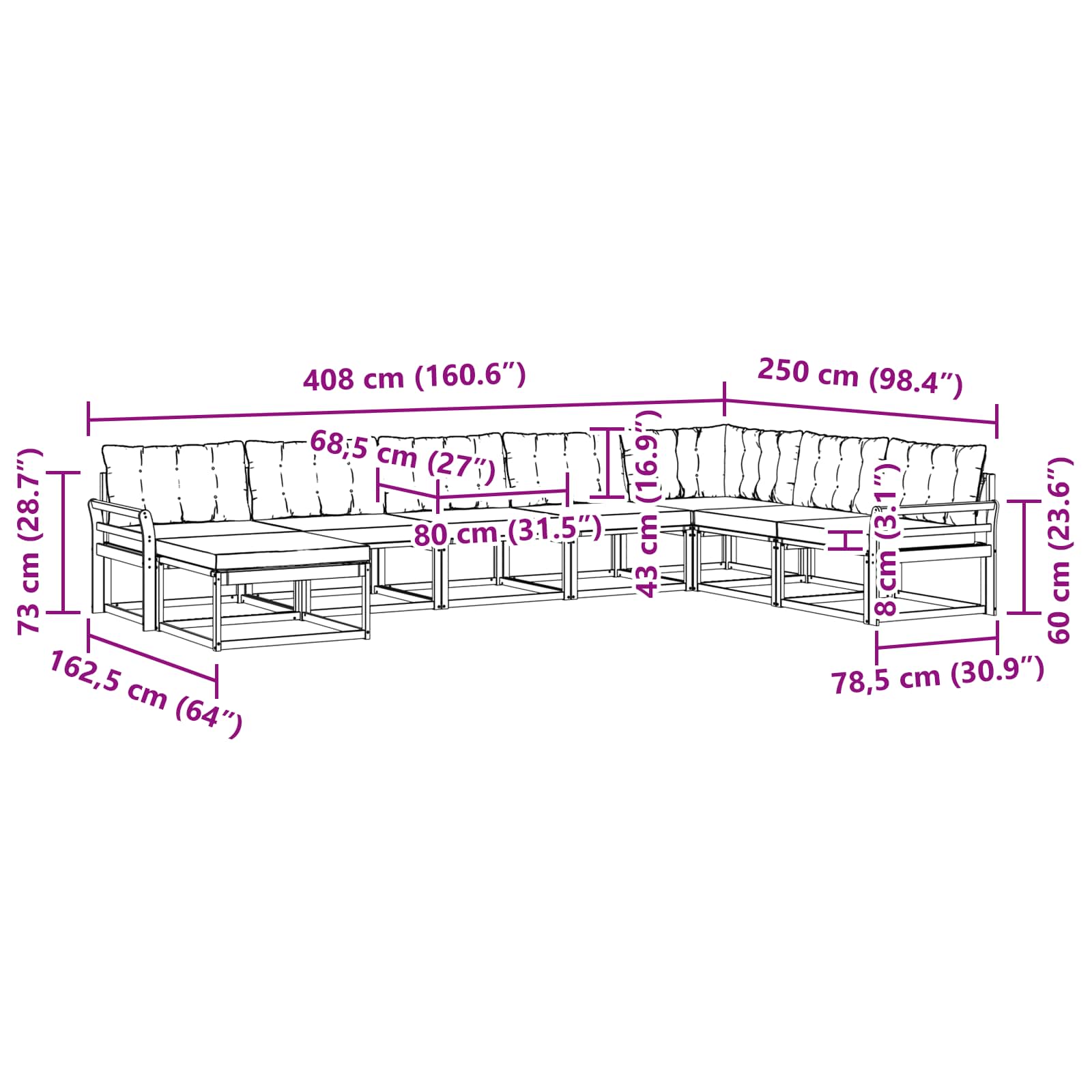 - 8 x Pernă de spate: 80 x 43 x 10 cm (LxWxH)