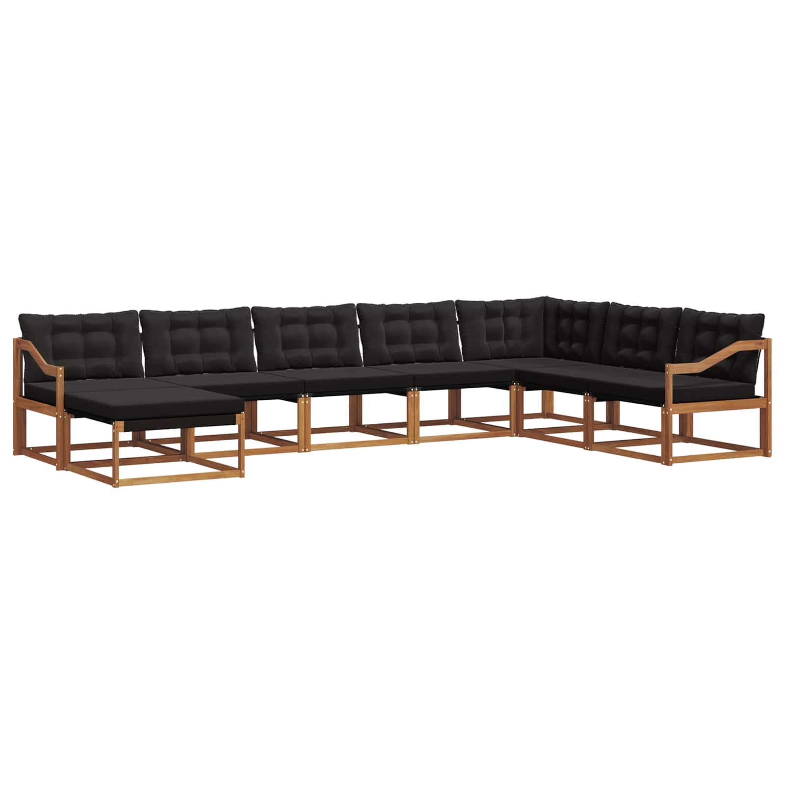 Setul ăsta modern de canapele, făcut din lemn solid de acacia, combină un design robust cu confort și eleganță, special creat pentru afară, în grădini și pe terase. Stilul lui contemporan merge de minune cu texturile naturale ale lemnului, oferind un aranjament plăcut pentru relaxare sau socializare în natură.