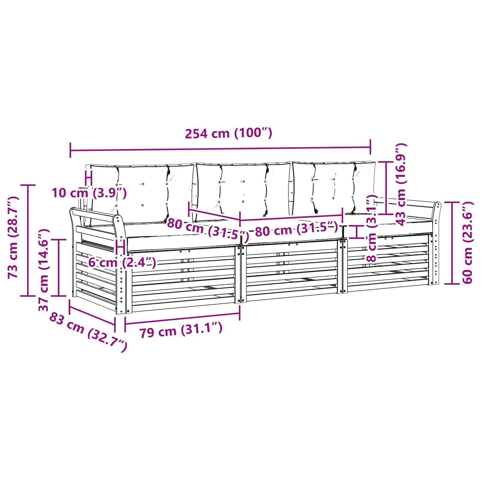 - 3 x Canapea Mijlocie: 79 x 83 x 73 cm (LxWxH)