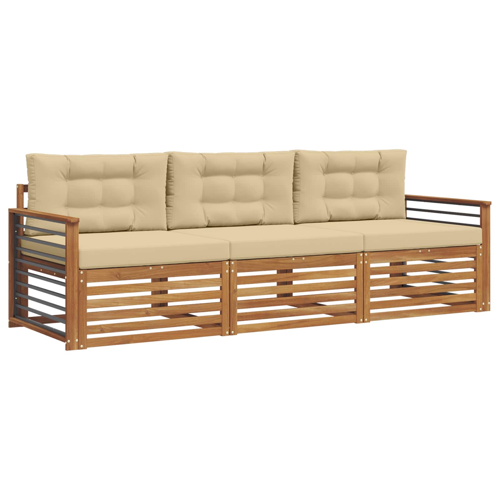 Set de canapele de exterior cu pernă 3 pcs Natural și Bej GartenMobel Dekor