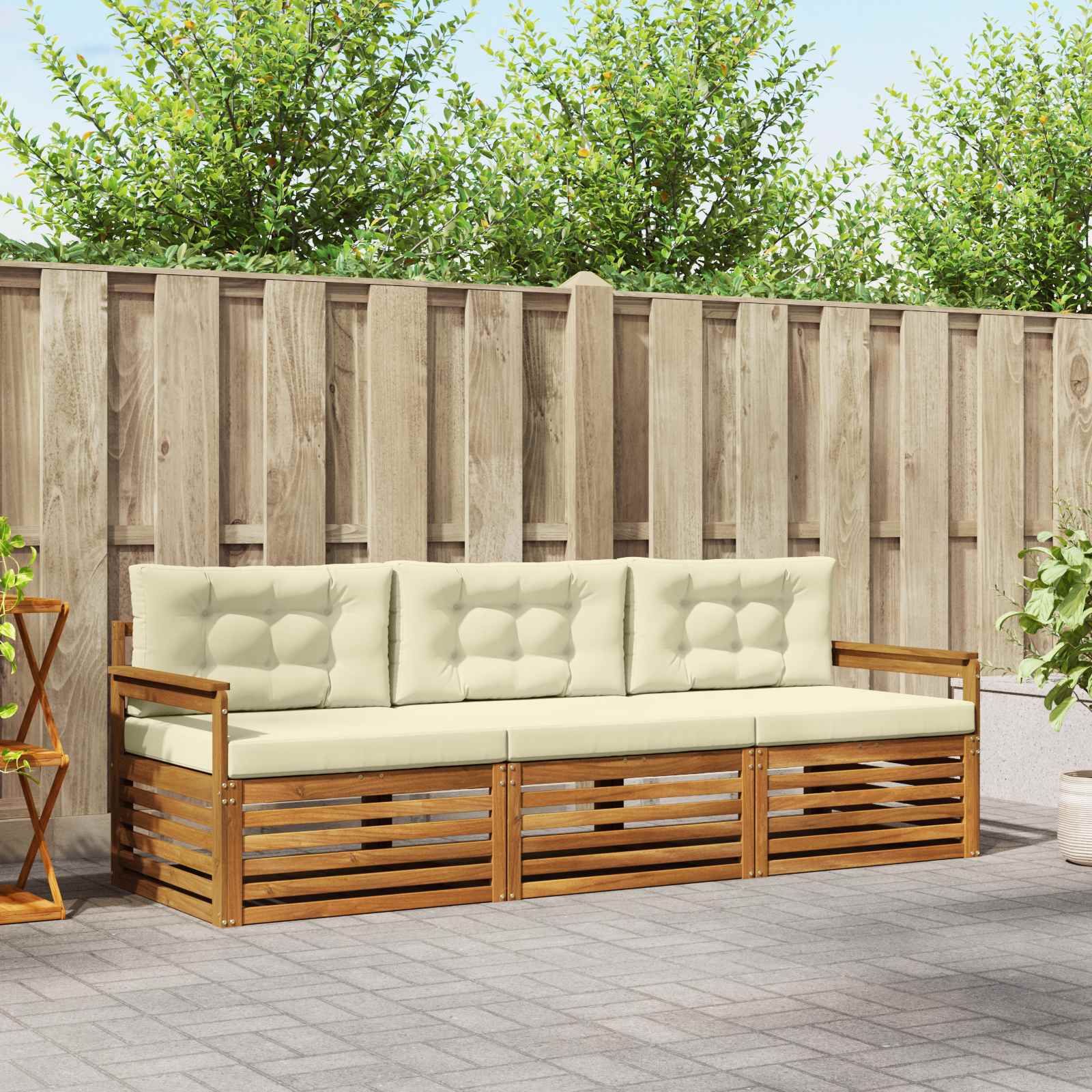 Setul ăsta de mobilier pentru exterior îmbină stilul cu funcționalitatea, creând un punct de interes pentru orice grădină sau terasă. Designul lui modern, cu linii clare și detalii simple, adaugă un plus de eleganță și favorizează momentele de relaxare și întâlnirile sociale afară. Fabricat din lemn masiv de acacia, setul e durabil și estetic, fiind alegerea perfectă pentru cei care caută un mix de utilitate și un design rafinat pentru mobilierul de exterior.