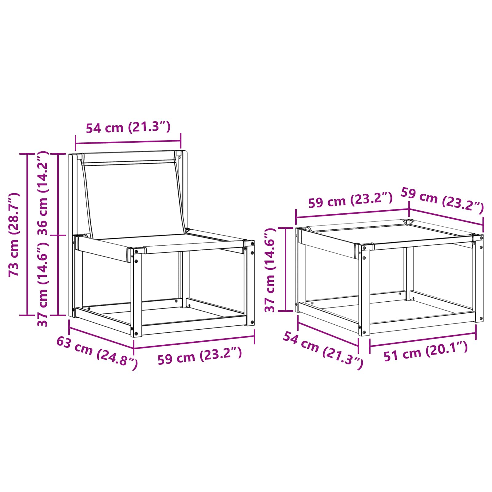 - 3 x Sofa de mijloc: 59 x 63 x 73 cm (LxWxH)