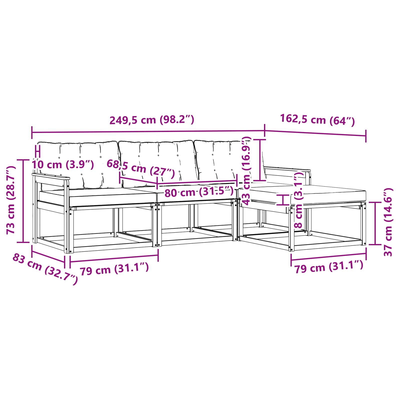 - 3 x Canapea Medie: 79 x 83 x 73 cm (LxWxH)