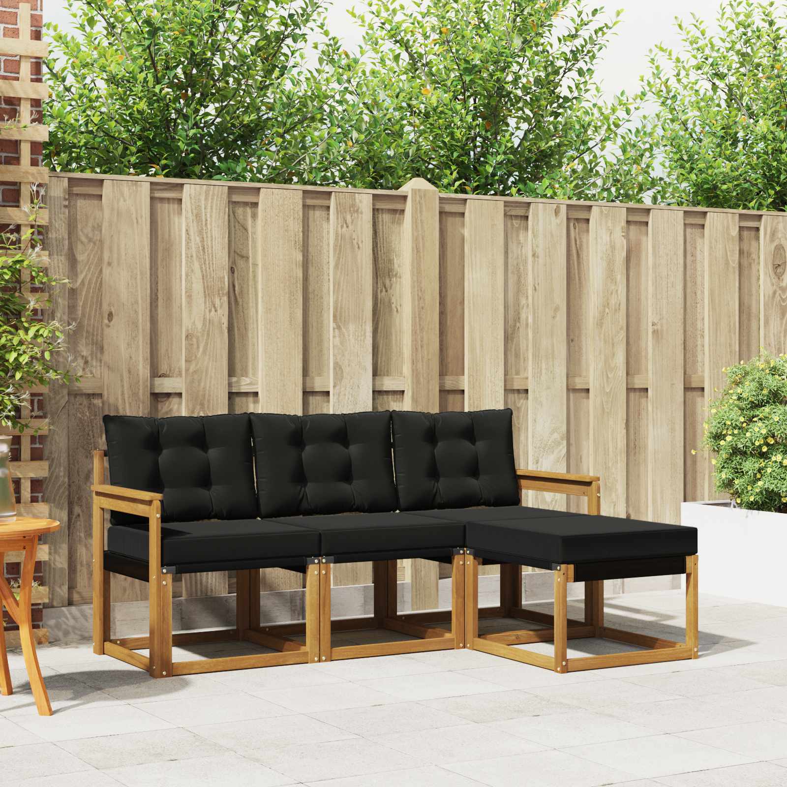 Setul de mobilier pentru exterior combină stilul cu funcționalitatea, creând o piesă centrală uimitoare pentru orice grădină sau terasă. Designul său modern, cu linii curate și detalii simple, adaugă eleganță și încurajează relaxarea în aer liber. Fabricat din lemn masiv de acacia, setul e durabil și arată bine în timp, fiind alegerea perfectă pentru cei care vor un mix de practic și un design elegant în mobilierul de exterior.