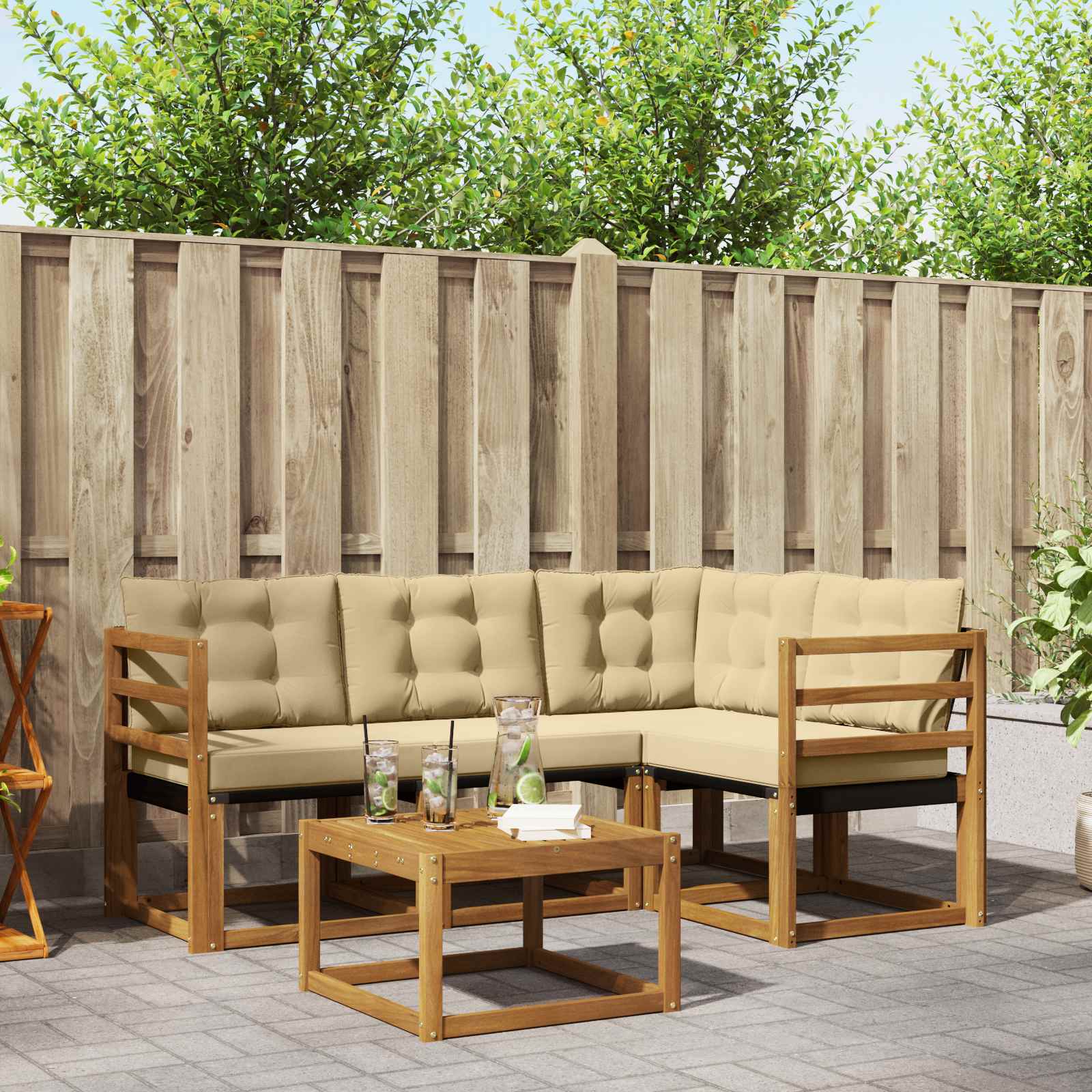 - Material: Lemn solid de acacia și textilene