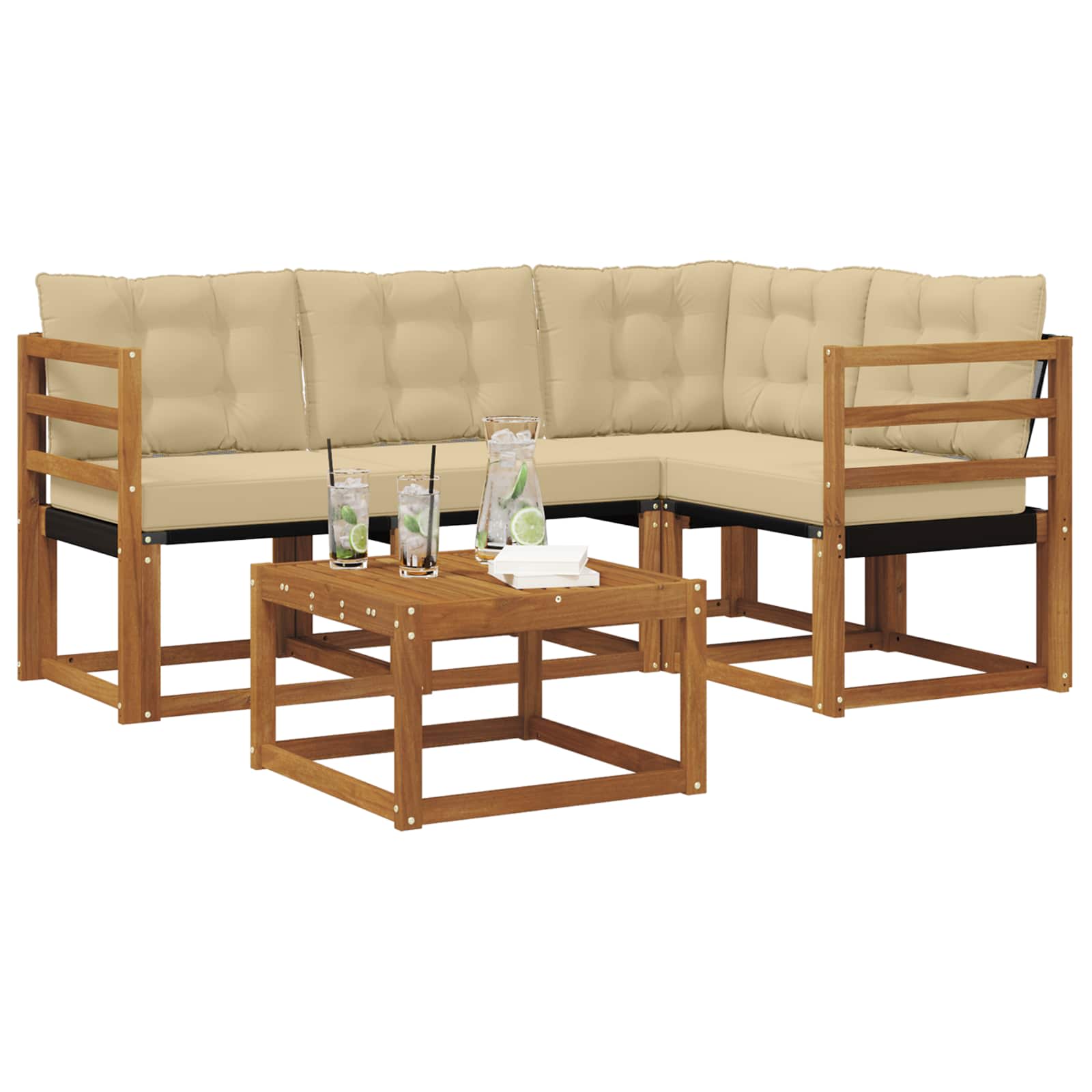 Set de canapele de exterior cu pernă 5 pcs Natural și Bej GartenMobel Dekor