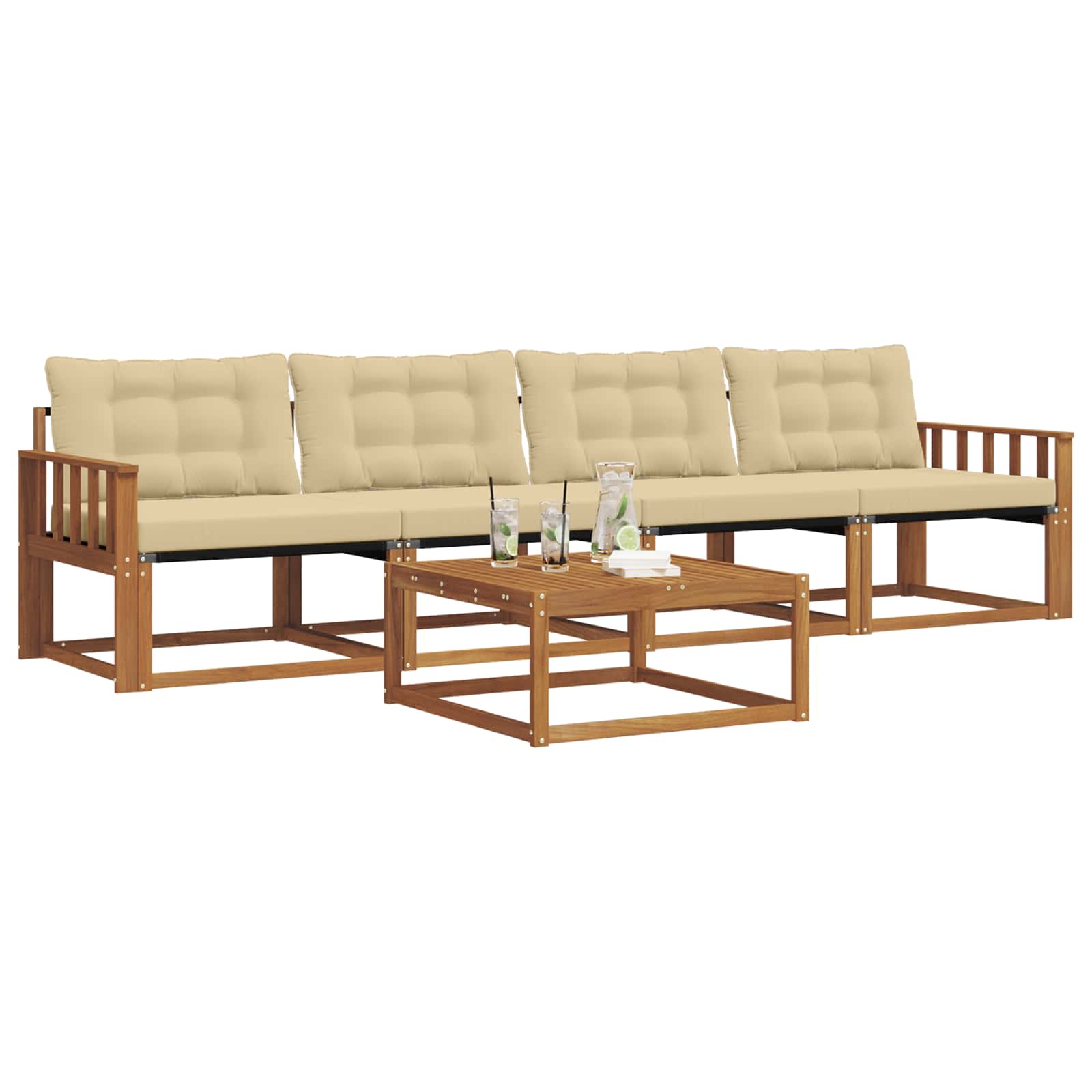 Set de canapele de exterior cu pernă 5 pcs Natural și Bej GartenMobel Dekor