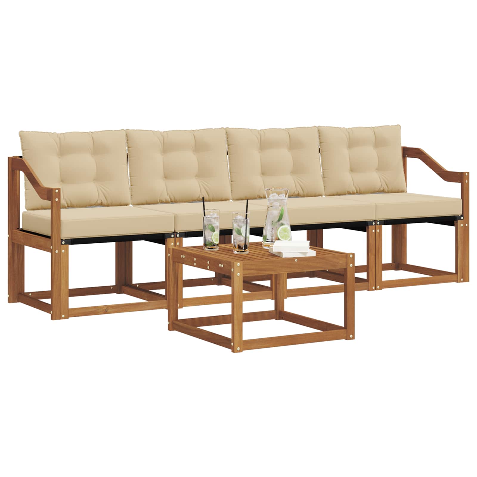 Set de canapele de exterior cu pernă 5 pcs Natural și Bej GartenMobel Dekor