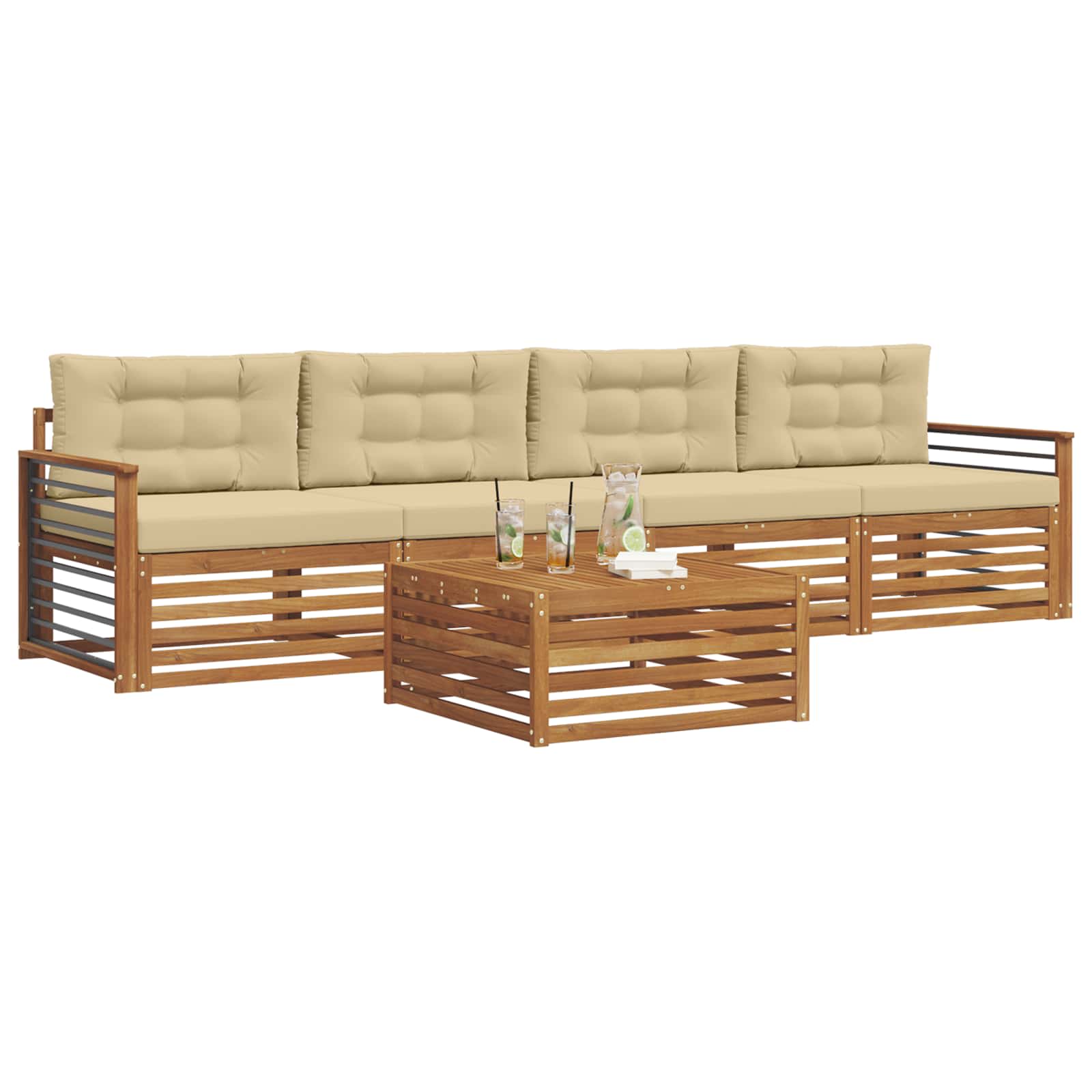 Set de canapele de exterior cu pernă 5 pcs Natural și Bej GartenMobel Dekor