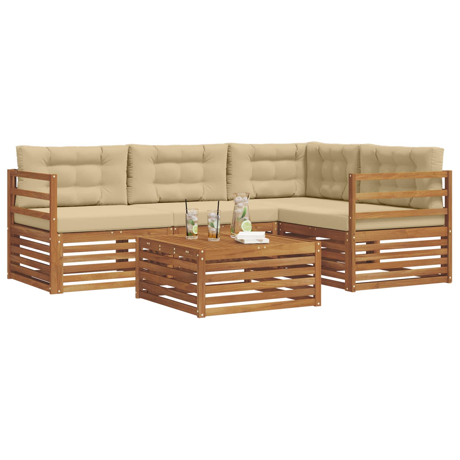 Setul ăsta de mobilier pentru exterior combină stilul și funcționalitatea, creând un punct focal strălucitor pentru orice grădină sau terasă. Designul lui modern, cu linii clare și detalii subtile, adaugă eleganță în timp ce încurajează relaxarea și întâlnirile sociale afară. E făcut din lemn de acacia masiv, care asigură durabilitate și un aspect plăcut pe termen lung, fiind ideal pentru cei care caută atât practicitate, cât și un design sofisticat pentru mobilierul de exterior.