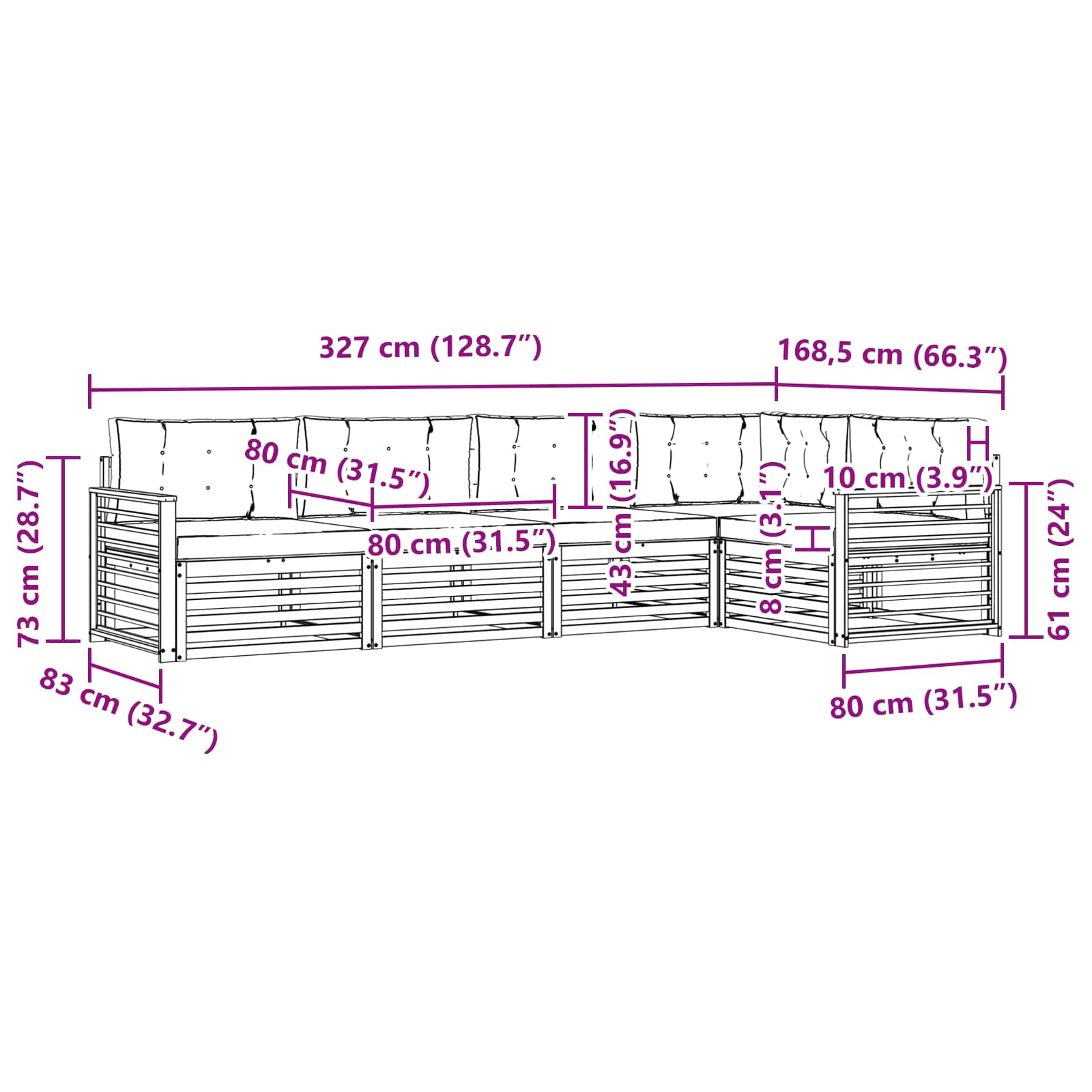 - 5 x Perne pentru Șezut: 80 x 80 x 8 cm (LxWxH)
