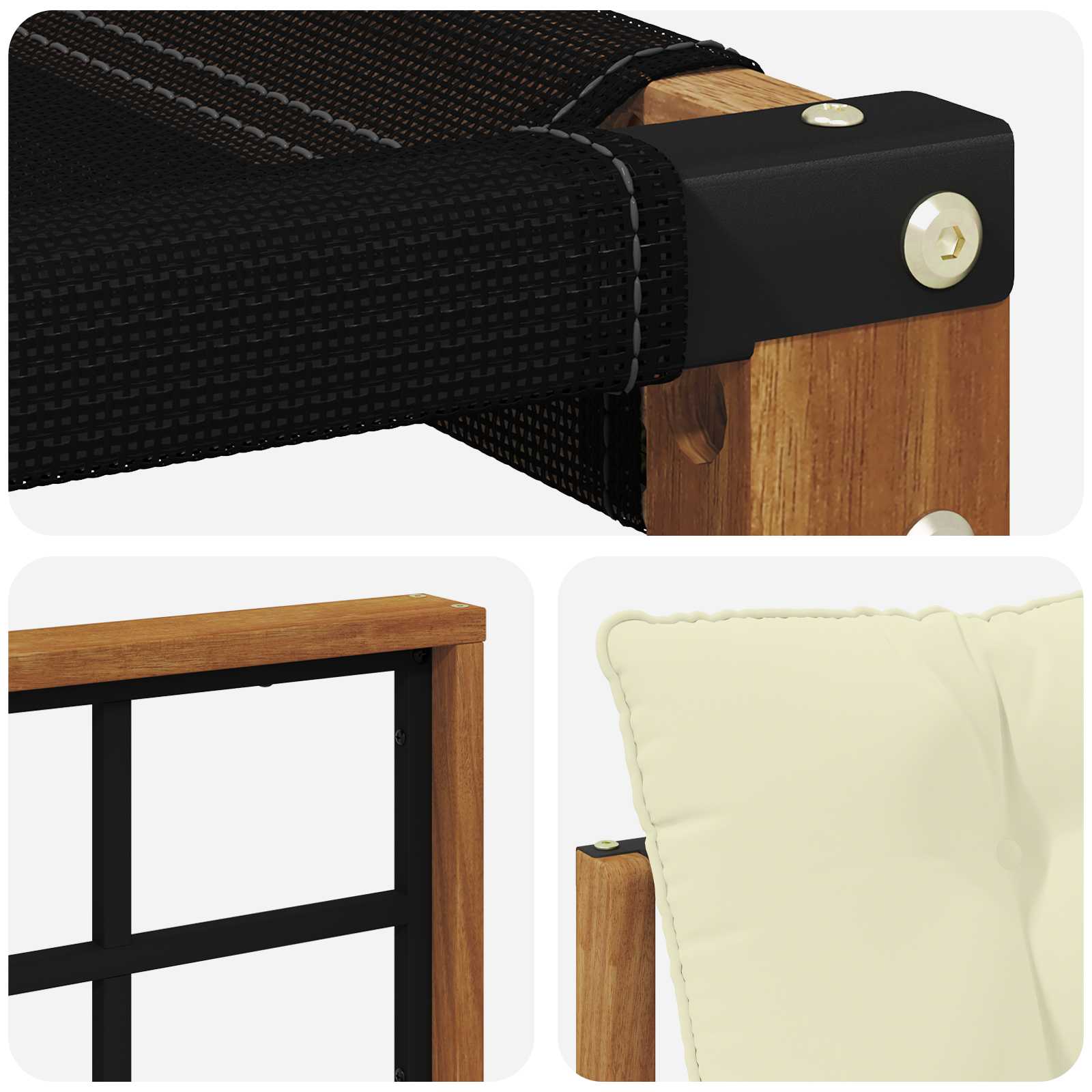 Setul de mobilier de exterior îmbină stilul și funcționalitatea, creând o piesă excelentă pentru orice grădină sau terasă. Designul modern, cu linii curate și detalii simple, adaugă eleganță și oferă un loc perfect pentru relaxare și întâlniri cu prietenii. Este fabricat din lemn masiv de acacia, ceea ce asigură durabilitatea și un aspect plăcut, fiind ideal pentru cei care caută atât utilitate, cât și un design rafinat în mobilierul de exterior.