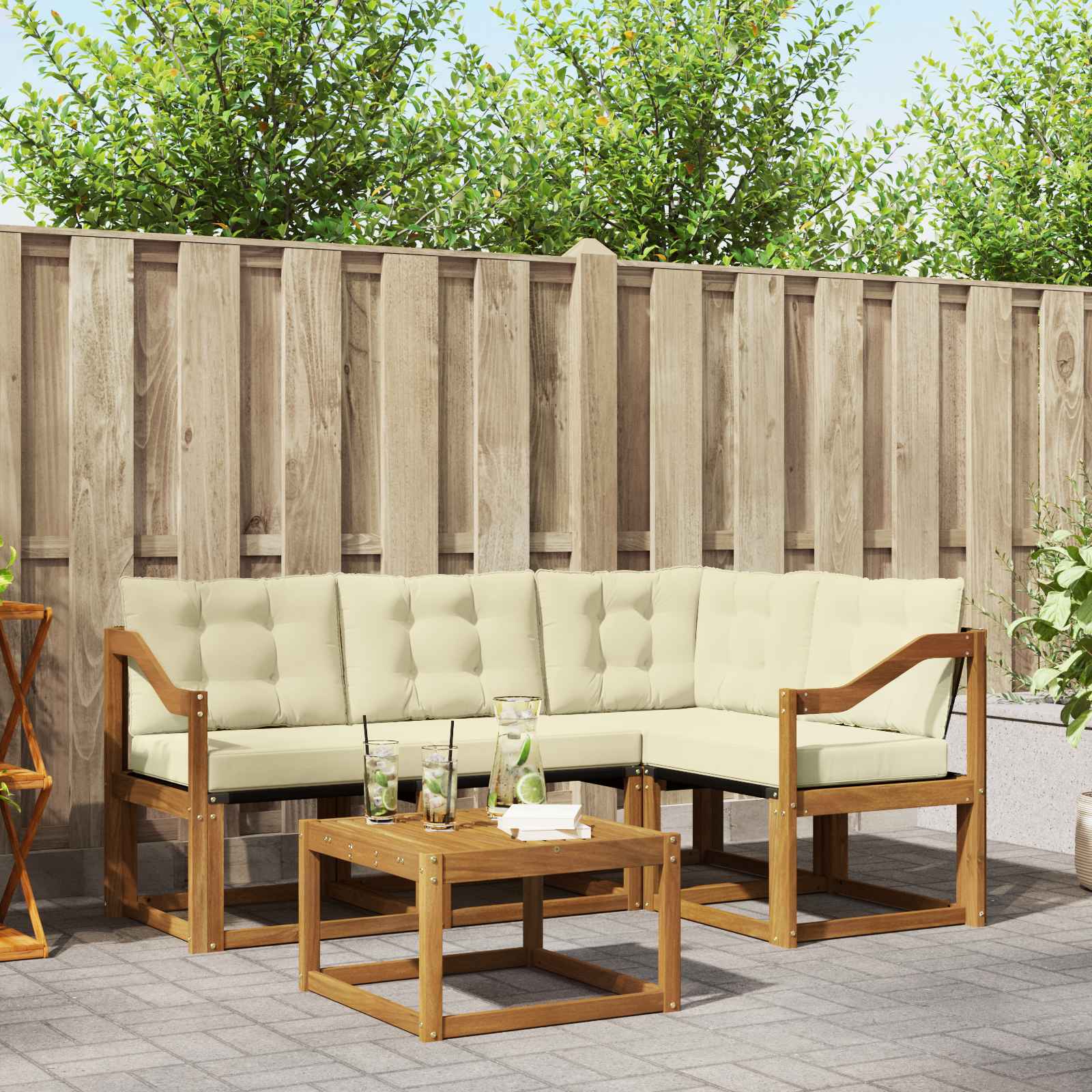 - Material: Lemn solid de acacia și textilene