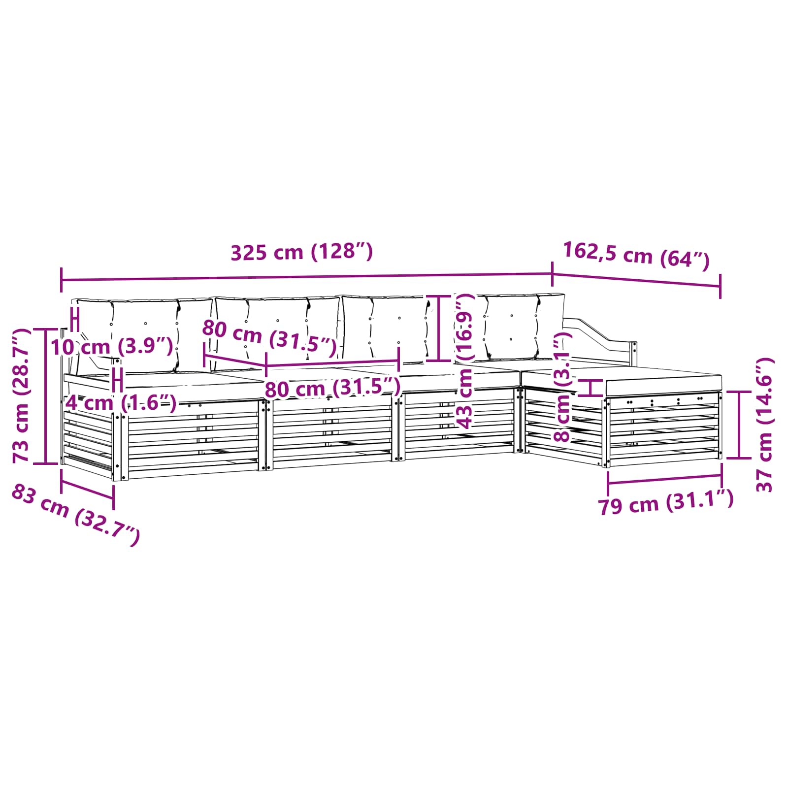 - 5 x Perne pentru Șezut: 80 x 80 x 8 cm (LxWxH)