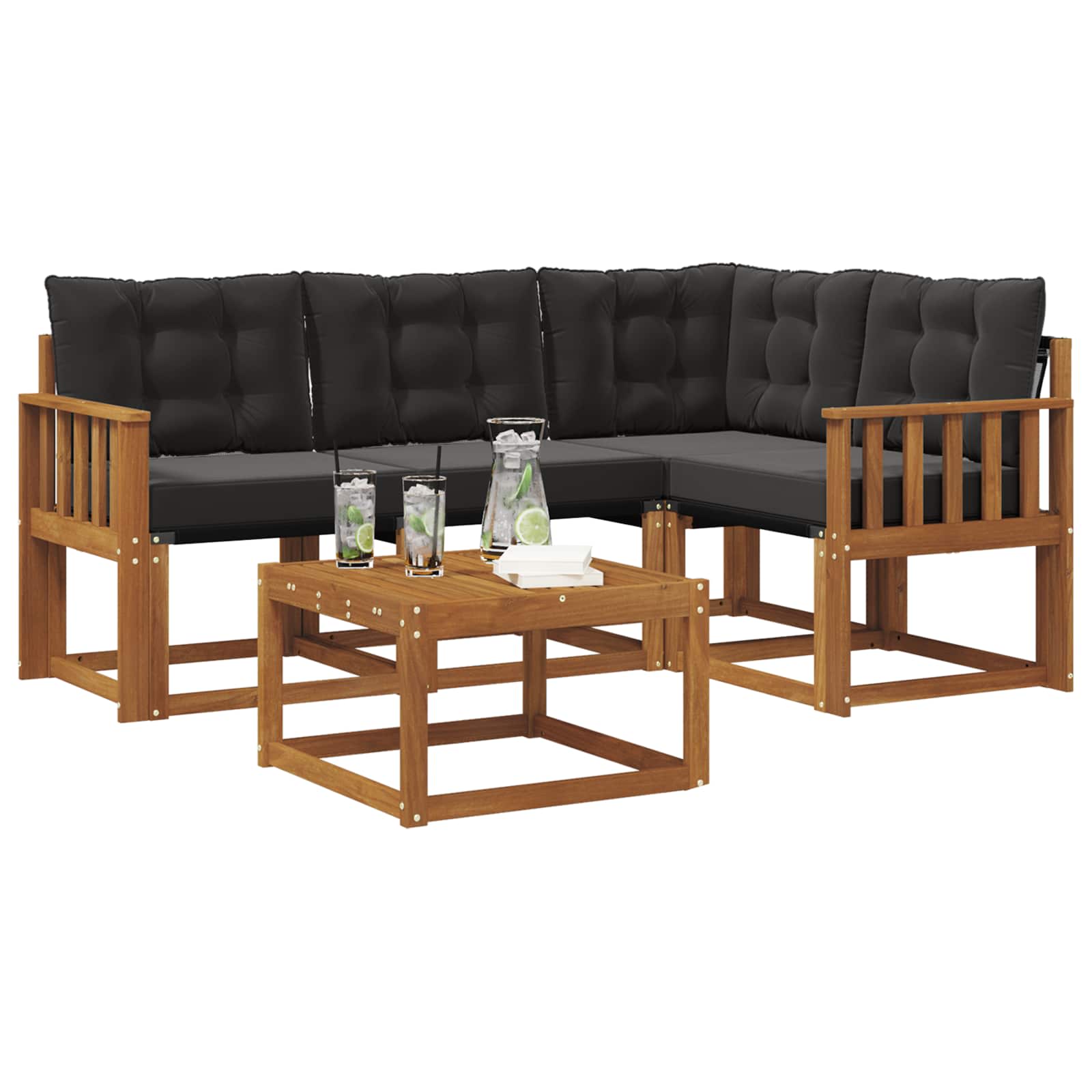 Set de canapele de exterior cu pernă 5 pcs Natural și Negru GartenMobel Dekor