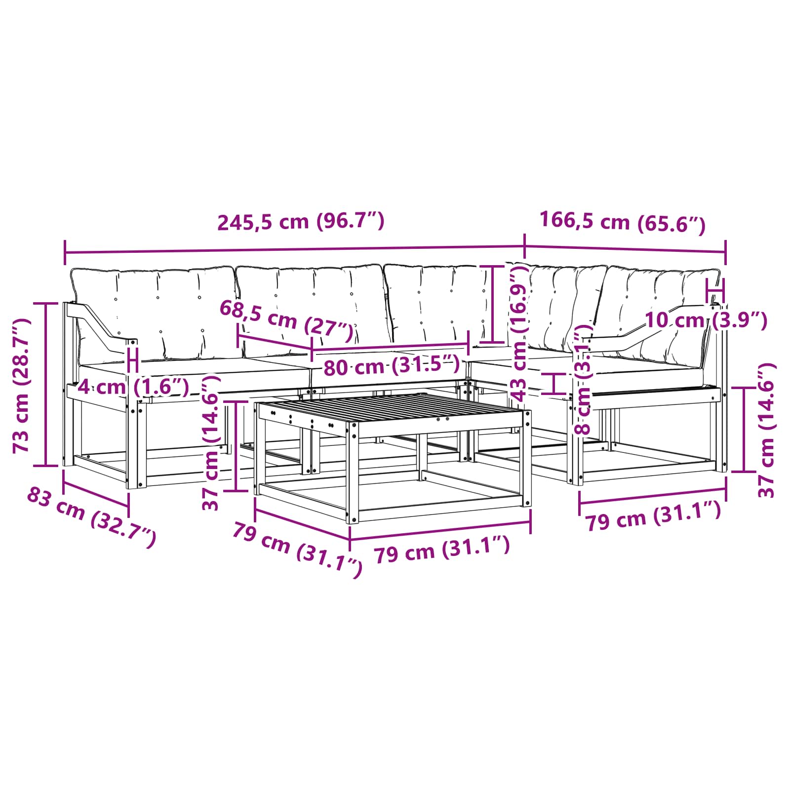 - Dimensiuni generale: 79 x 79 x 37 cm (L x l x î)