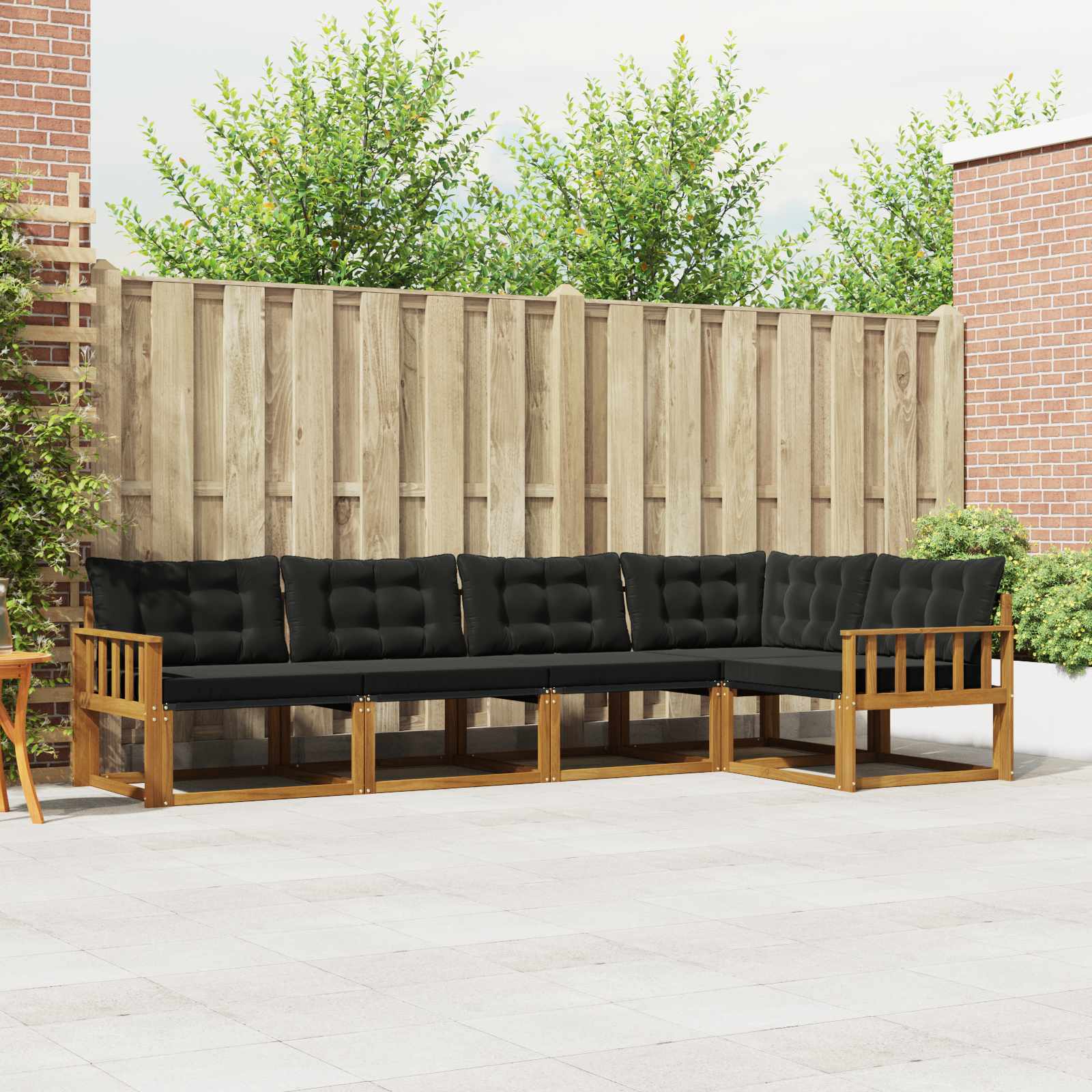 - materiale premium: Făcut din lemn masiv de acacia, setul de canapele aduce un vibe elegant și oferă și robustețe. Țesătura textilenă se întinde pe cadre, oferind flexibilitate pe termen lung. Materialele astea rezistă la vreme, asigurându-ți un produs de care te bucuri mult timp.