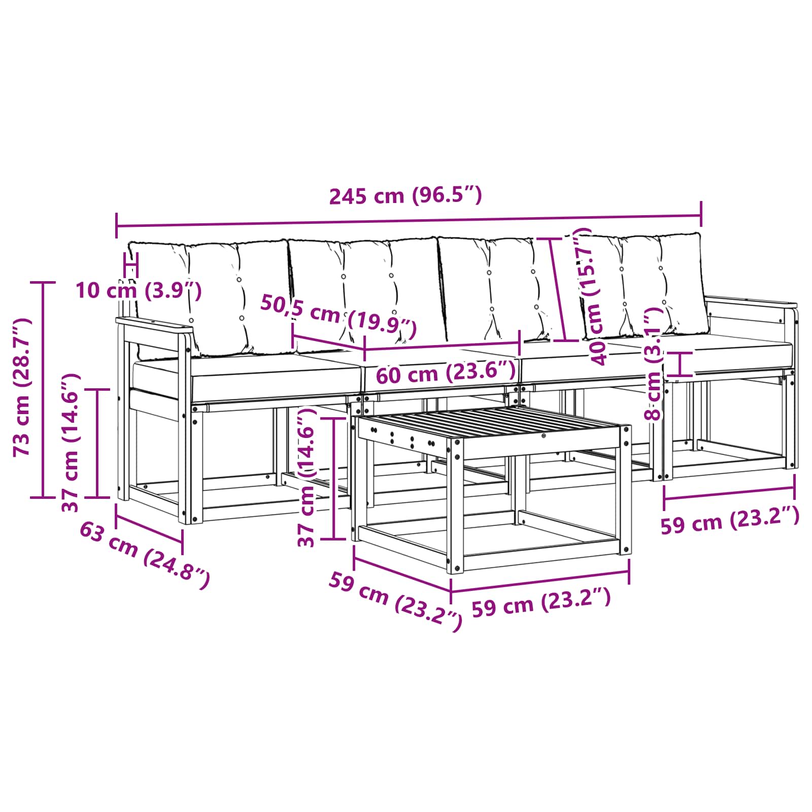 - 4 x Canapea din mijloc: 59 x 63 x 73 cm (LxWxH)