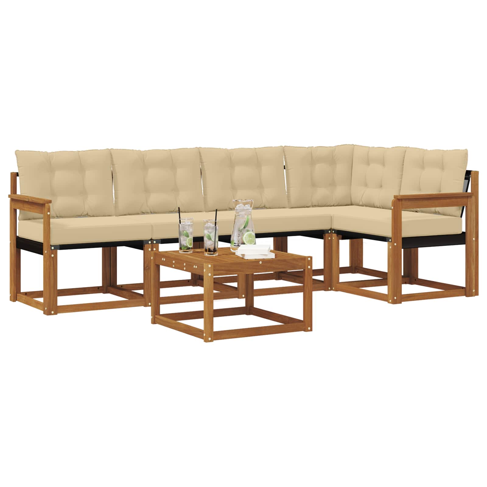 Set de canapele de exterior cu pernă 6 pcs Natural și Bej GartenMobel Dekor
