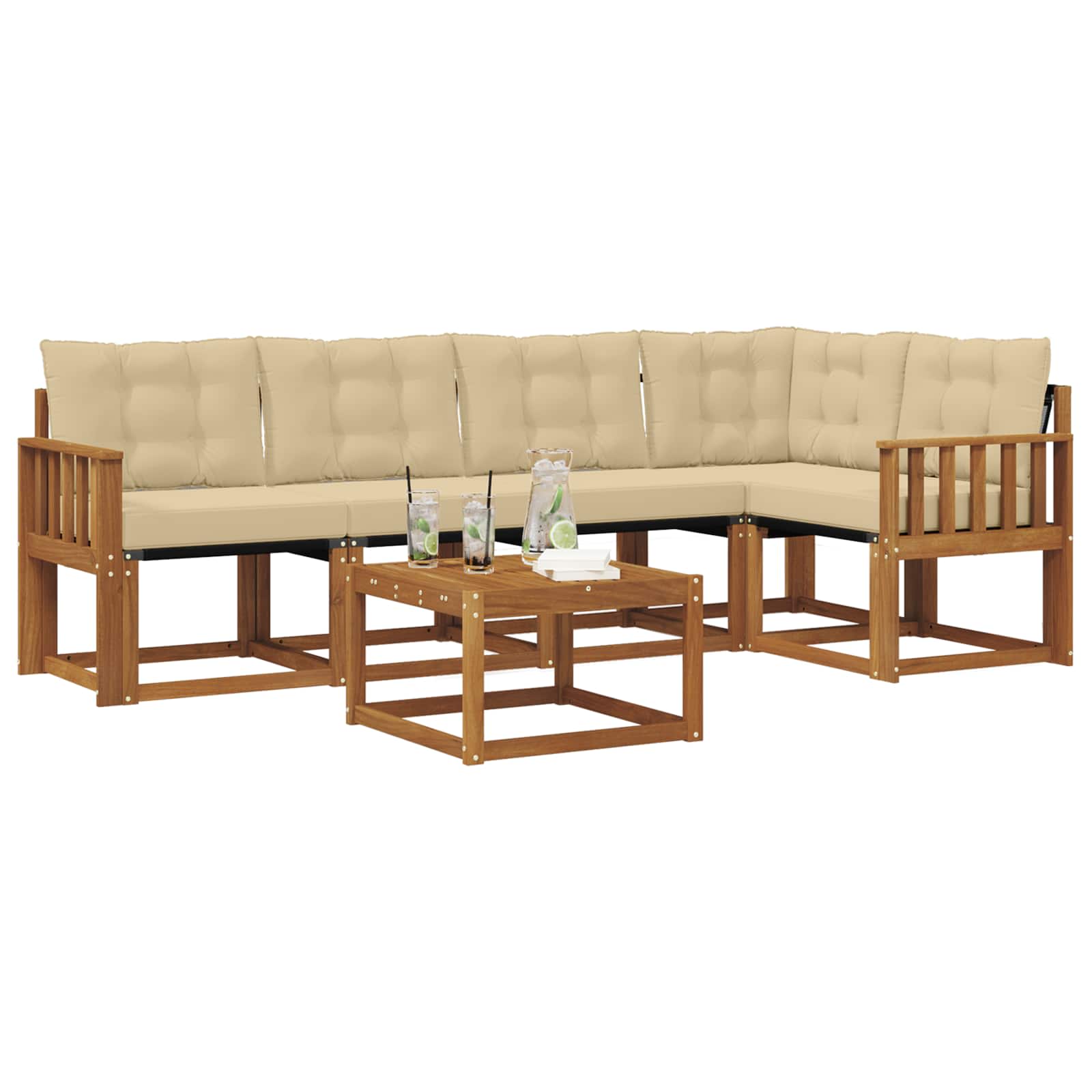 Set de canapele de exterior cu pernă 6 pcs Natural și Bej GartenMobel Dekor