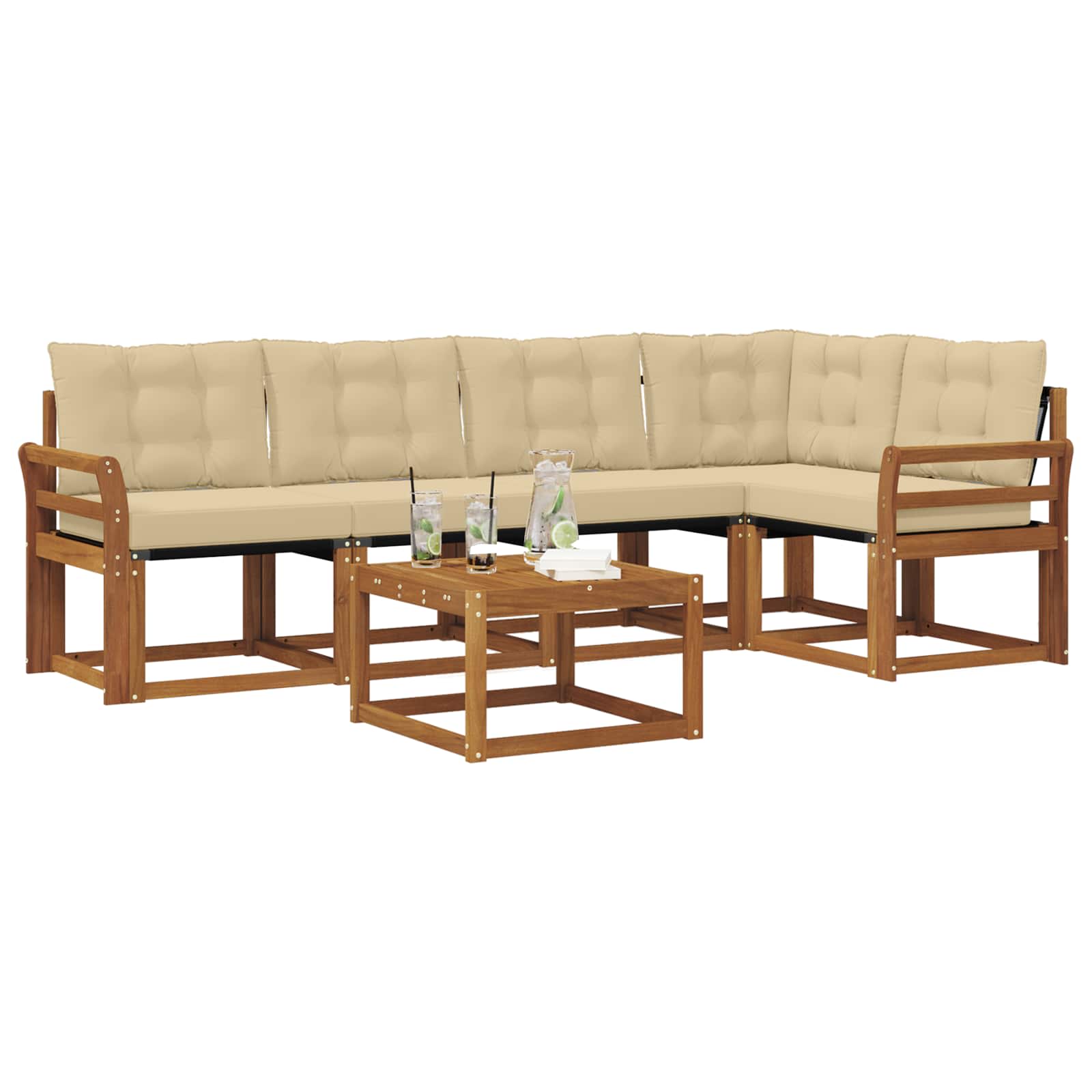 Set de canapele de exterior cu pernă 6 pcs Natural și Bej GartenMobel Dekor