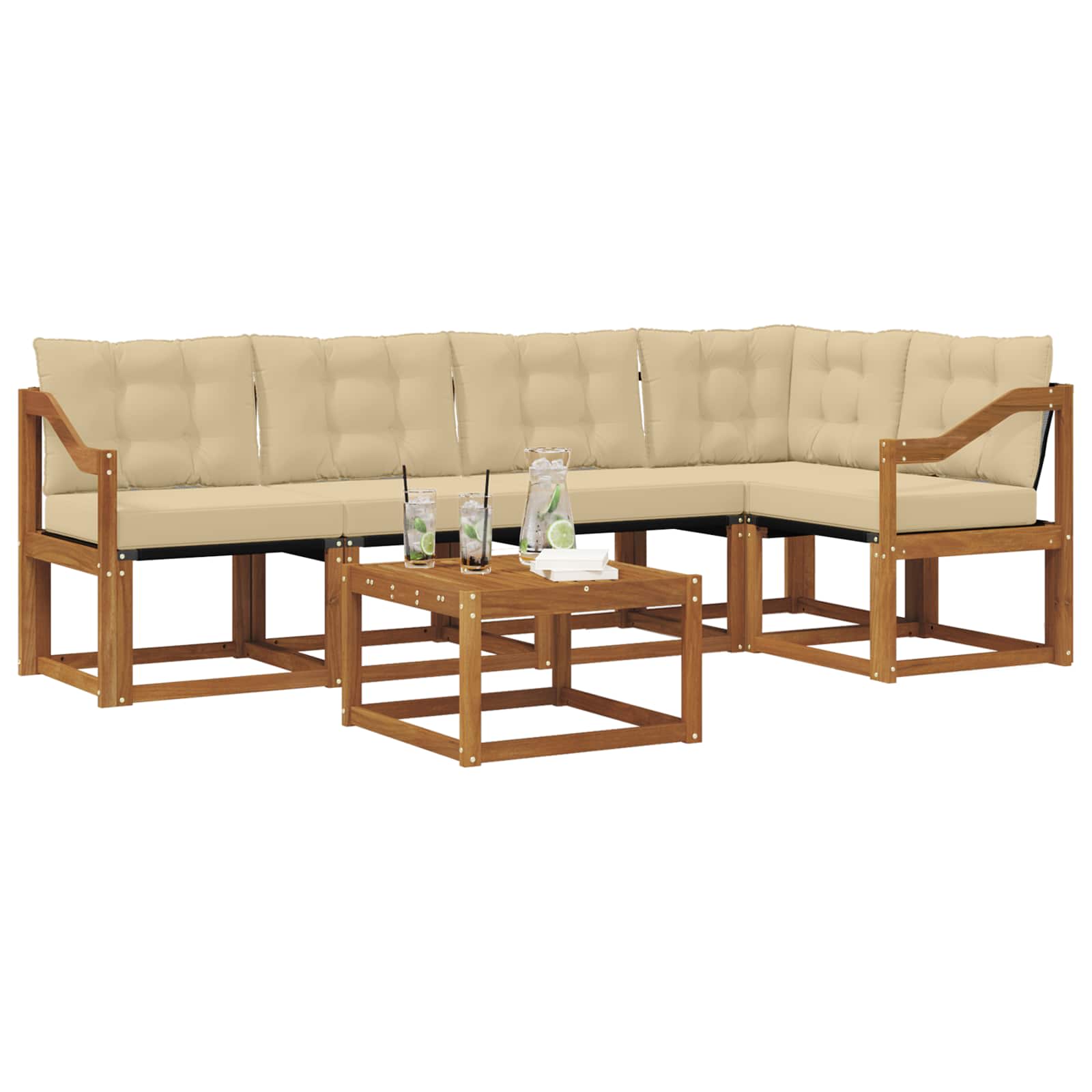 Set de canapele de exterior cu pernă 6 pcs Natural și Bej GartenMobel Dekor