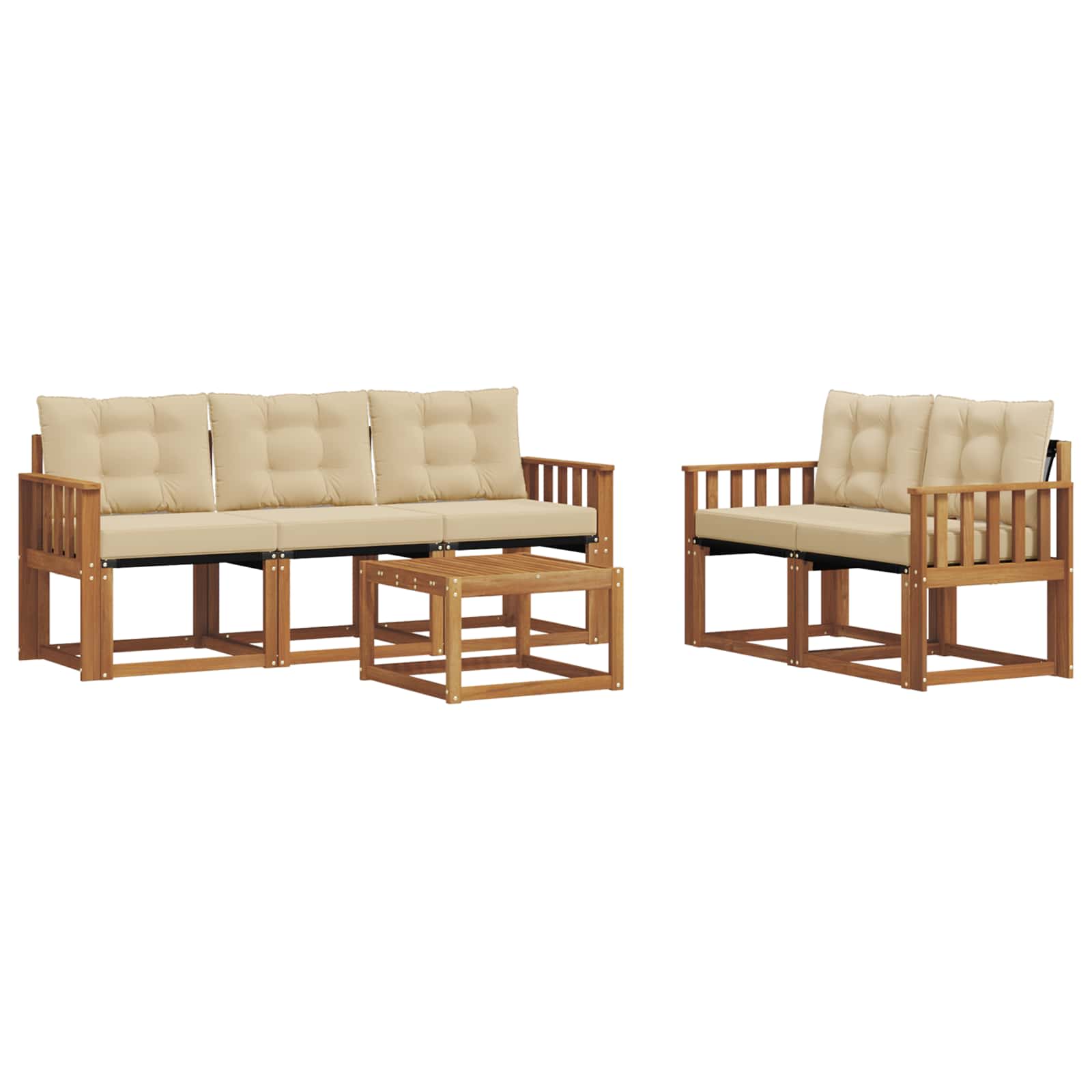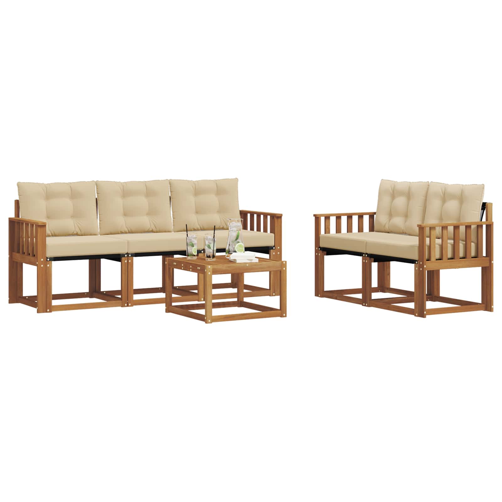 Setul de mobilier de exterior combină stilul cu funcționalitatea, fiind o piesă excelentă pentru orice grădină sau terasă. Cu un design modern, simplu și elegant, aduce un vibe relaxant pentru întâlniri sociale afară. Făcut din lemn masiv de acacia, asigură durabilitate și arată bine pe termen lung, ideal pentru cei care caută atât practică, cât și un design frumos în mobilierul de exterior.