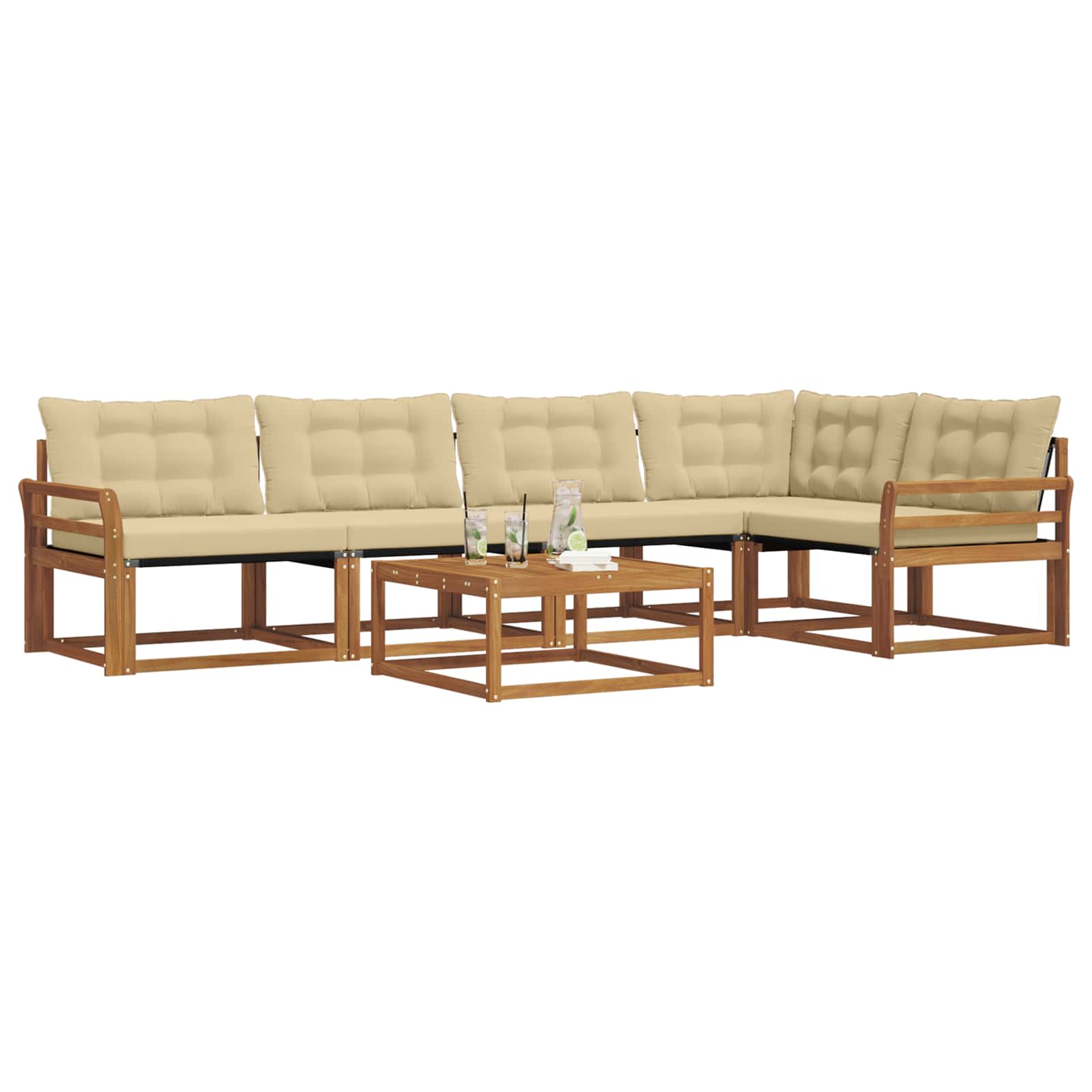 Setul de mobilier de exterior îmbină stilul cu funcționalitatea, creând un punct de atracție pentru grădină sau terasă. Designul modern, cu linii clare și detalii fine, aduce eleganță și completează perfect momentele de relaxare afară. Fabricat din lemn masiv de acacia, acest set e durabil și arată bine mult timp, fiind alegerea ideală pentru cei care caută un mobilier practic și elegant.