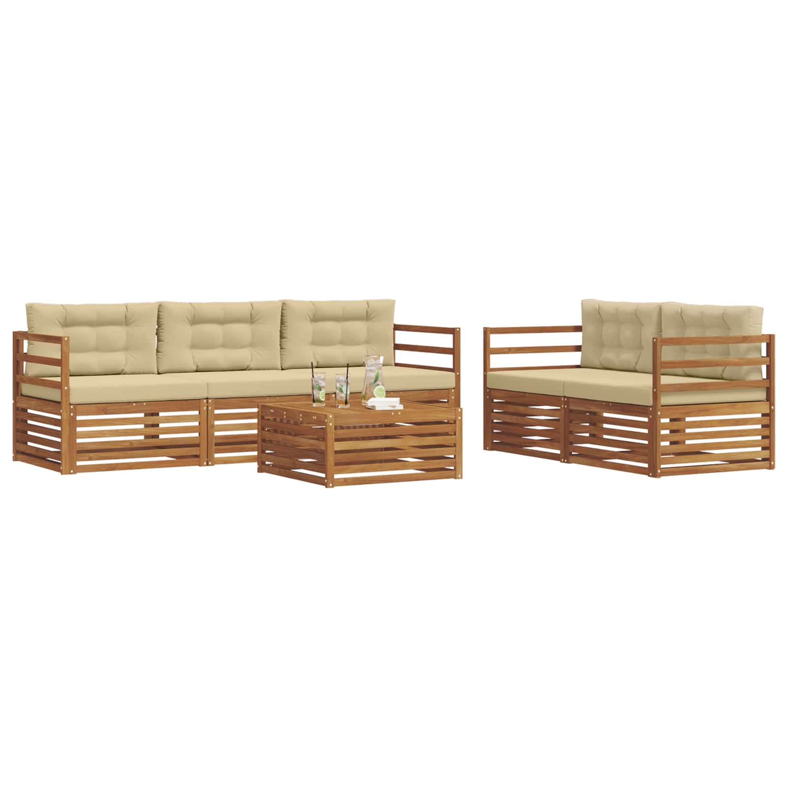 Set de canapele de exterior cu pernă 6 pcs Natural și Bej GartenMobel Dekor