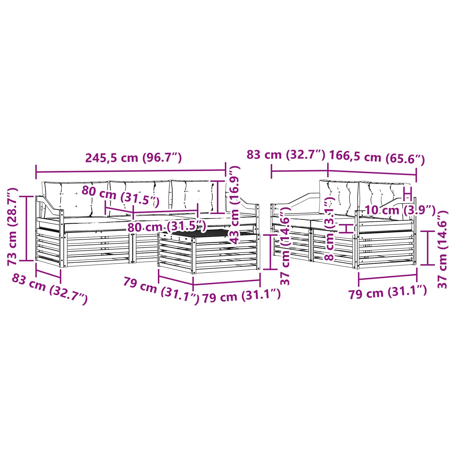 - 5 x Sofa din mijloc: 79 x 83 x 73 cm (LxWxH)