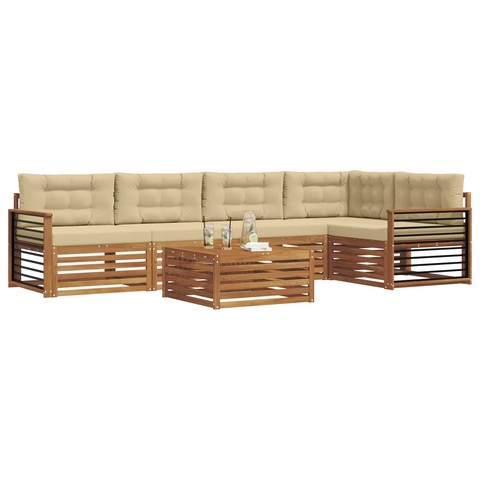 Setul de mobilier de exterior combină stilul cu funcționalitatea și e un punct de atracție pentru grădini sau terase. Designul modern, cu linii clare și detalii minimaliste, adaugă eleganță și te ajută să te relaxezi în aer liber, perfect pentru întâlniri cu prietenii. Făcut integral din lemn de acacia, setul e durabil și arată bine mult timp, deci e alegerea ideală pentru cei care caută un mobilier practic, dar și frumos.