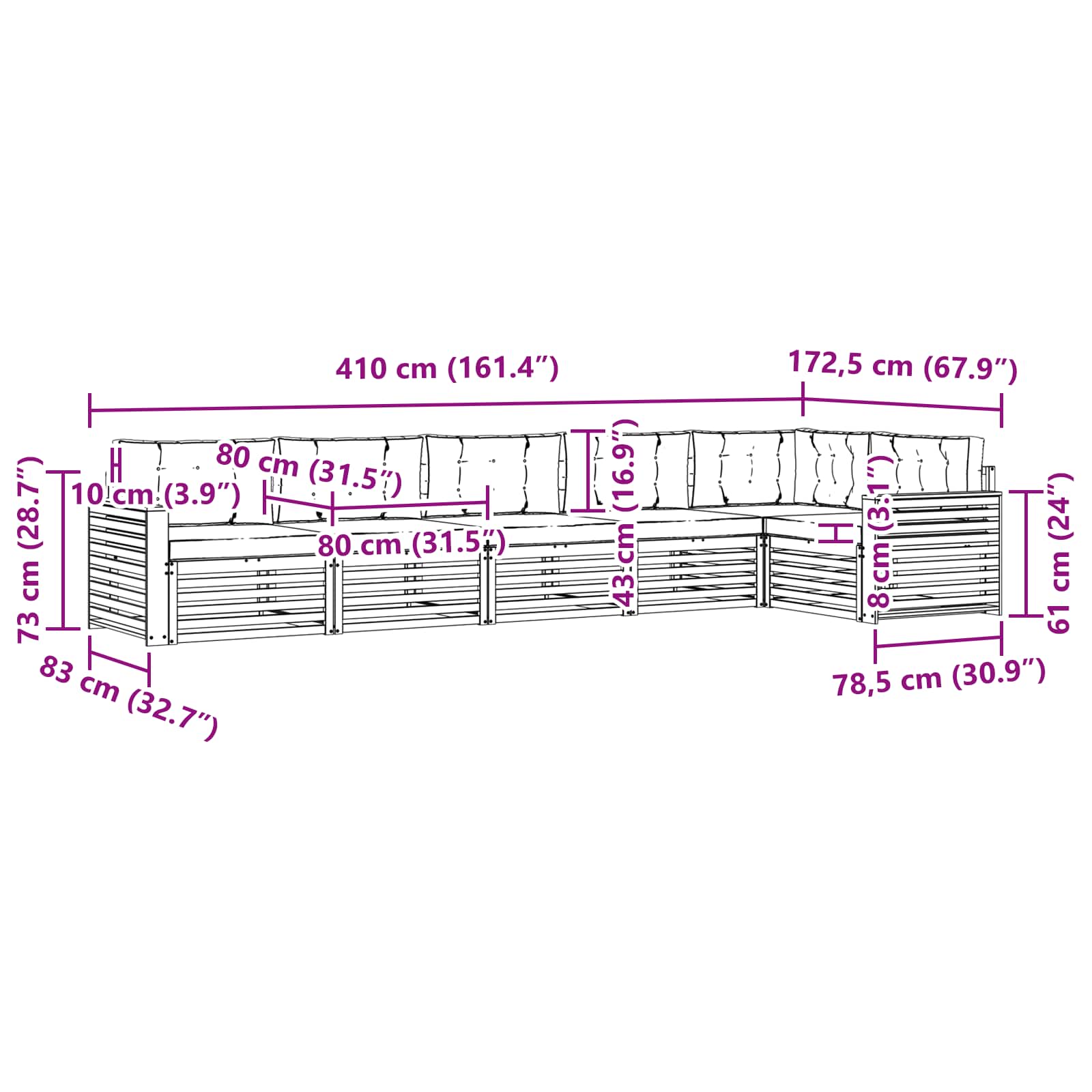- 6 x Perne de șezut: 80 x 80 x 8 cm (LxWxH)