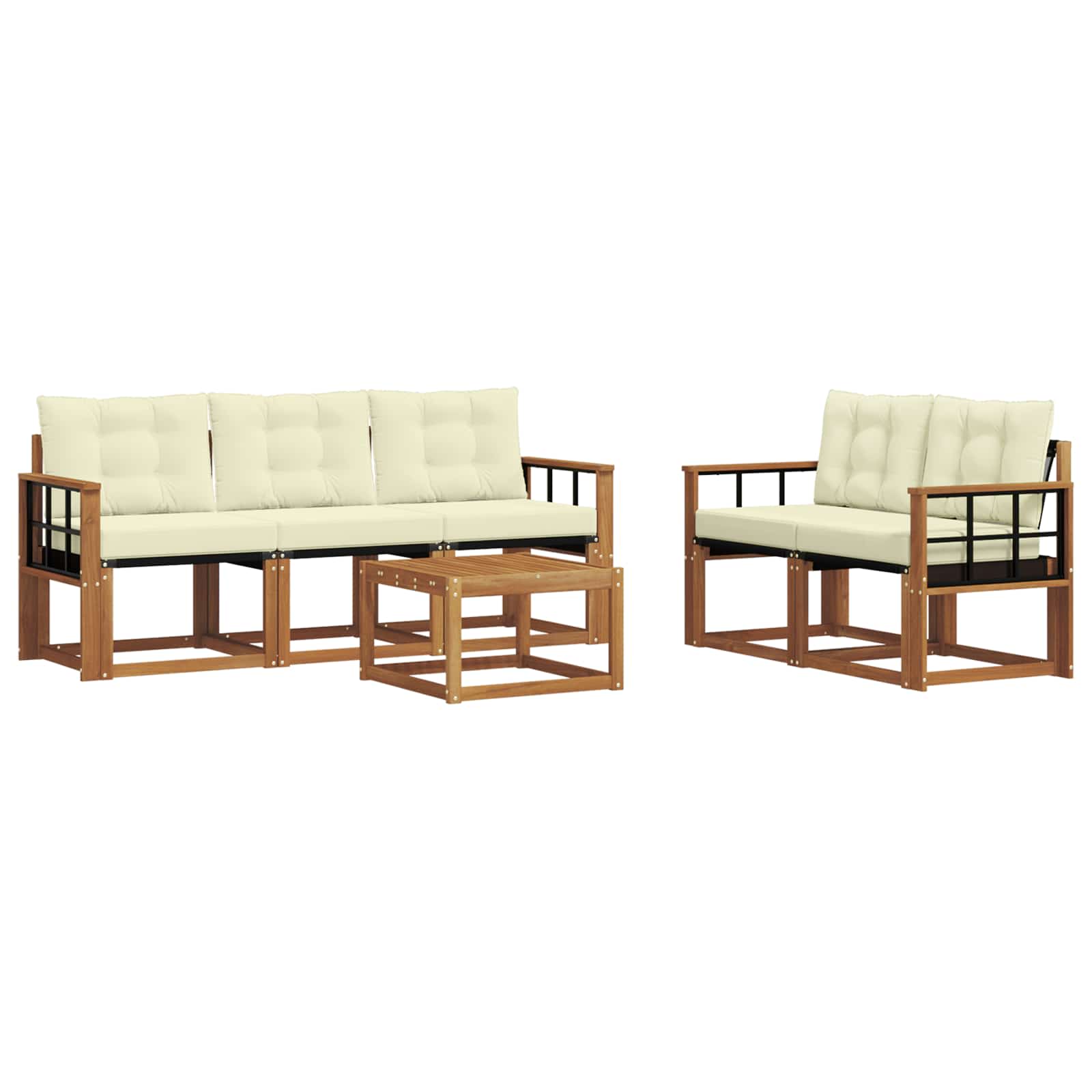 Setul de mobilier de exterior combină stilul cu funcționalitatea, fiind o piesă excelentă pentru orice grădină sau terasă. Cu un design modern, simplu și elegant, aduce un vibe relaxant pentru întâlniri sociale afară. Făcut din lemn masiv de acacia, asigură durabilitate și arată bine pe termen lung, ideal pentru cei care caută atât practică, cât și un design frumos în mobilierul de exterior.