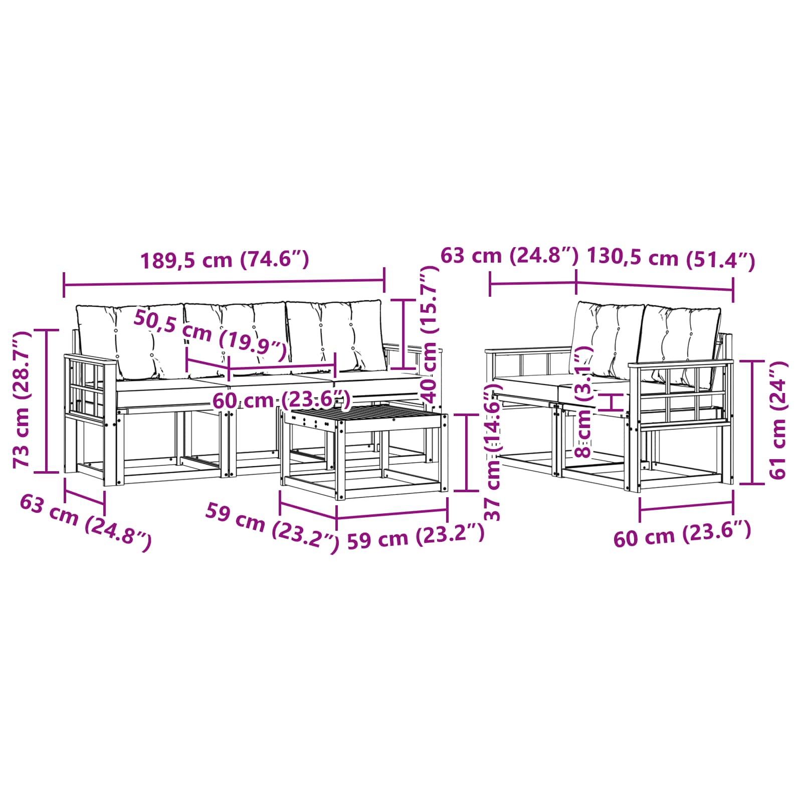 - 5 x Pernă de Șezut: 60 x 50,5 x 8 cm (LxWxH)