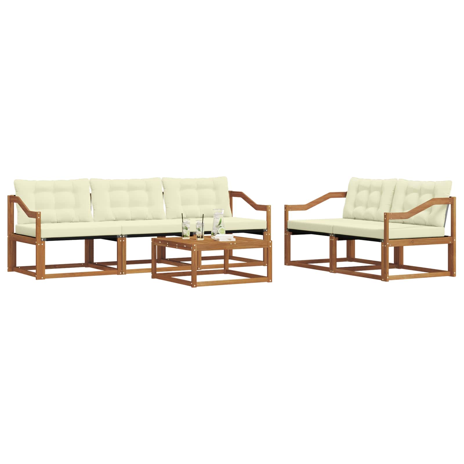 Setul de mobilier de exterior e combinația perfectă între stil și funcționalitate, devenind centrul de interes pentru orice grădină sau terasă. Cu un design modern, cu linii curate și simple, adaugă eleganță și sprijină relaxarea și întâlnirile în aer liber. E făcut din lemn masiv de acacia, asigurând durabilitate și un look frumos pe termen lung, fiind alegerea perfectă pentru cei care caută atât utilitate, cât și un stil rafinat în mobilierul exterior.