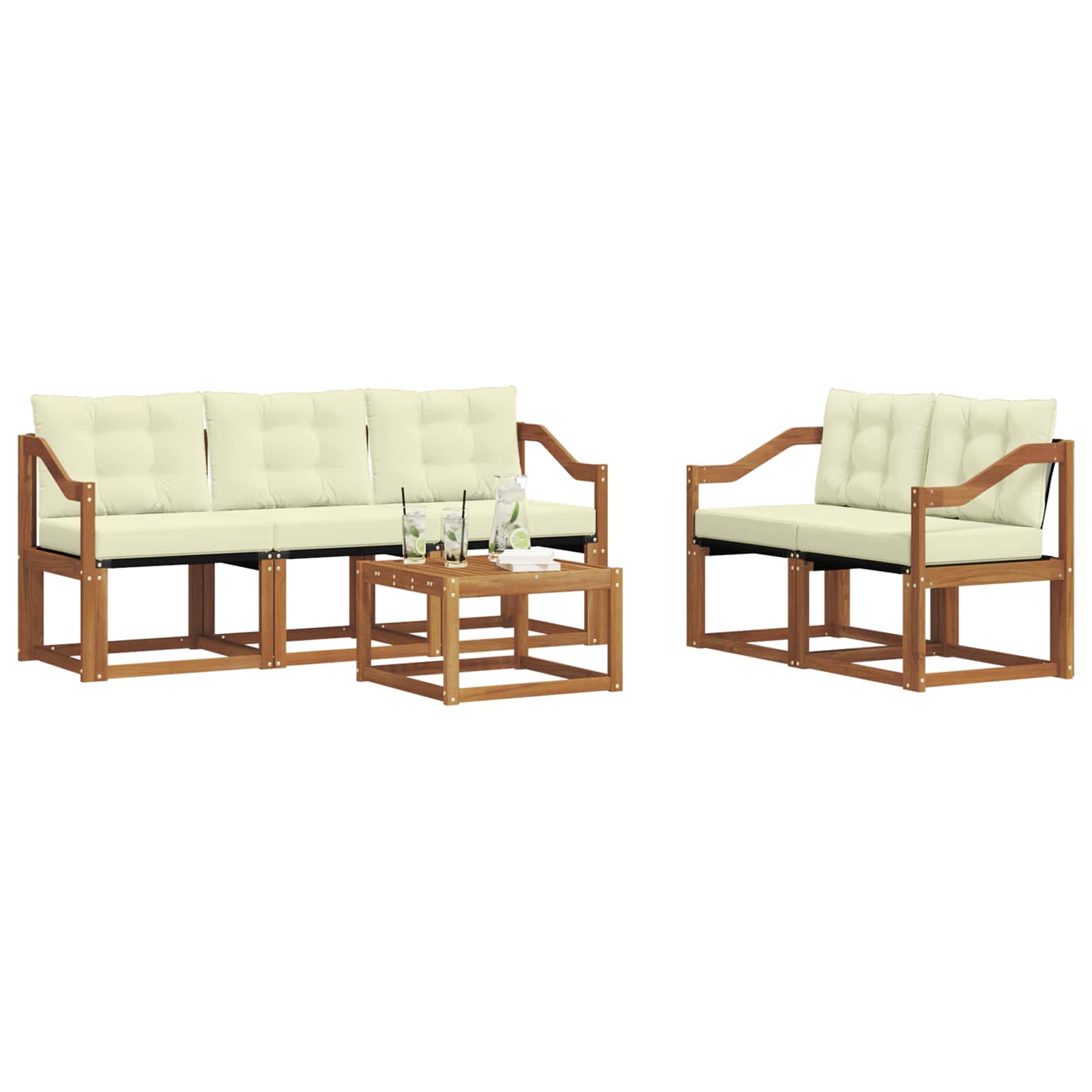 Setul de mobilier de exterior combină stilul cu funcționalitatea, fiind o piesă excelentă pentru orice grădină sau terasă. Cu un design modern, simplu și elegant, aduce un vibe relaxant pentru întâlniri sociale afară. Făcut din lemn masiv de acacia, asigură durabilitate și arată bine pe termen lung, ideal pentru cei care caută atât practică, cât și un design frumos în mobilierul de exterior.