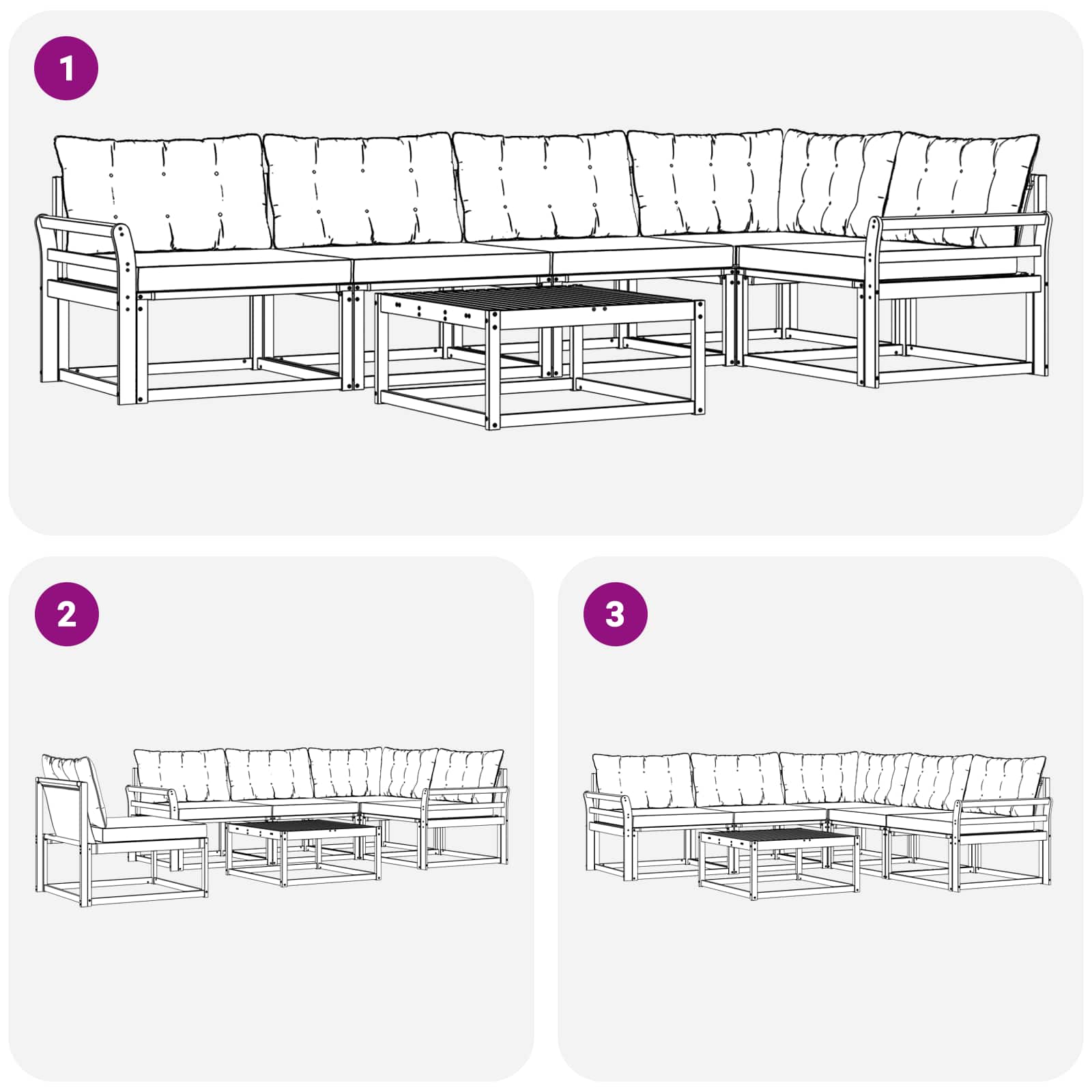 - 6 x Pernă de spătar: 80 x 43 x 10 cm (L x l x î)